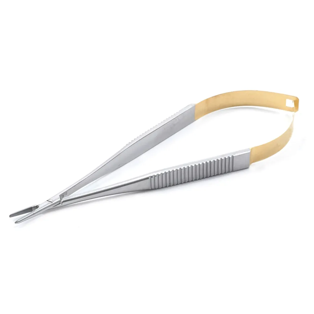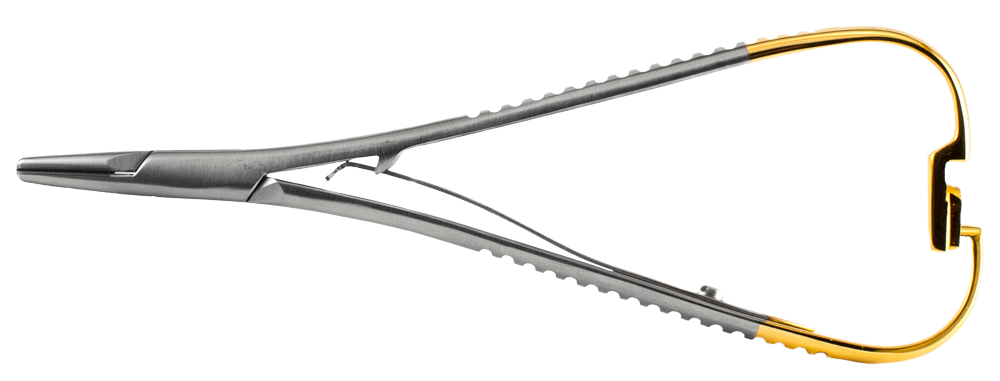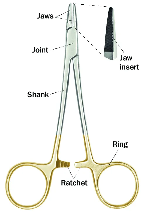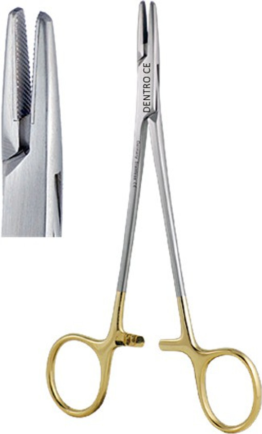 سوزن گیر کارباید - Needle Holder:مخصوص گرفتن سوزن برای بخیه زدن است.جنس سر سوزنگیر از تنگستن کارباید است.سوزن گیر کارباید برند پیشرودنتدر سه سایز 13، 14 و 16 سانتی متر و جنس استیل عرضه می گردد.