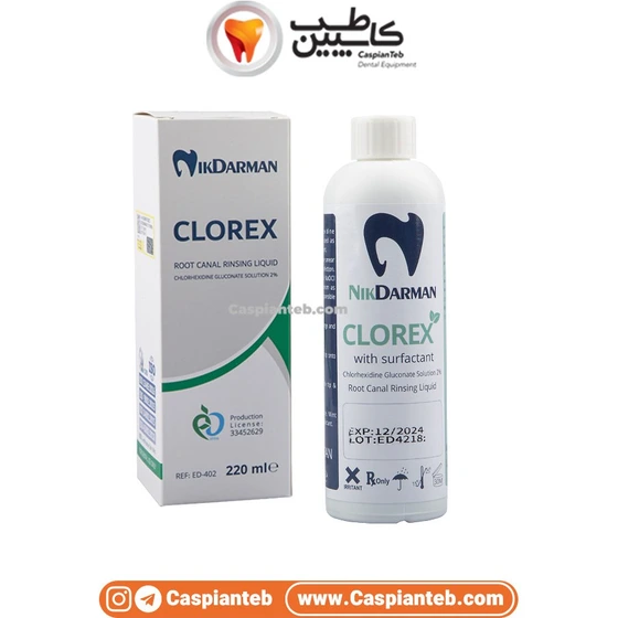محلول کلرهگزیدین کلرکس - Clorex Mega %2:مناسب و ایده آل برای شستشوی کانال ریشه در درمان اندو و درمان مجدد اندو می باشد.در شستشوی کانال های دارای التهاب کاربرد دارد.استفاده از ابزار های دندانپزشکی را بواسطه روان سازی حین درمان ریشه آسان می سازد.قابل استفاده در موارد عفونت آنتروکوک فوکالیس و یا کاندیدا آلبیکانس است.باعث افزایش قدرت اتصال دنتین به عوامل باندینگ و عدم اثر سمی روی بافت پری آپیکال می شود.حاوی سورفکتانت به منظور مرطوب سازی بهتر است.کلرهگزیدین توسط بارهای مثبت خود جذب دنتین شده و نقش موثری در حذف کولونی ها و بایوفیلم ها دارد و این اثربخشی تا چندین روز طی دوره درمان باعث باکتری کشی دنتین می شود.محلول کلرهگزیدین کلرکس برند نیک درمان در حجم یک لیتری در فروشگاه اینترنتی دندانت عرضه میگردد.**** خریدتجهیزات دندانپزشکیبا قیمت و کیفیت عالی از سایت دندانت ******** برای خرید محصولاتضد عفونی کننده کانالاز بهترین برندها کلیک کنید ****