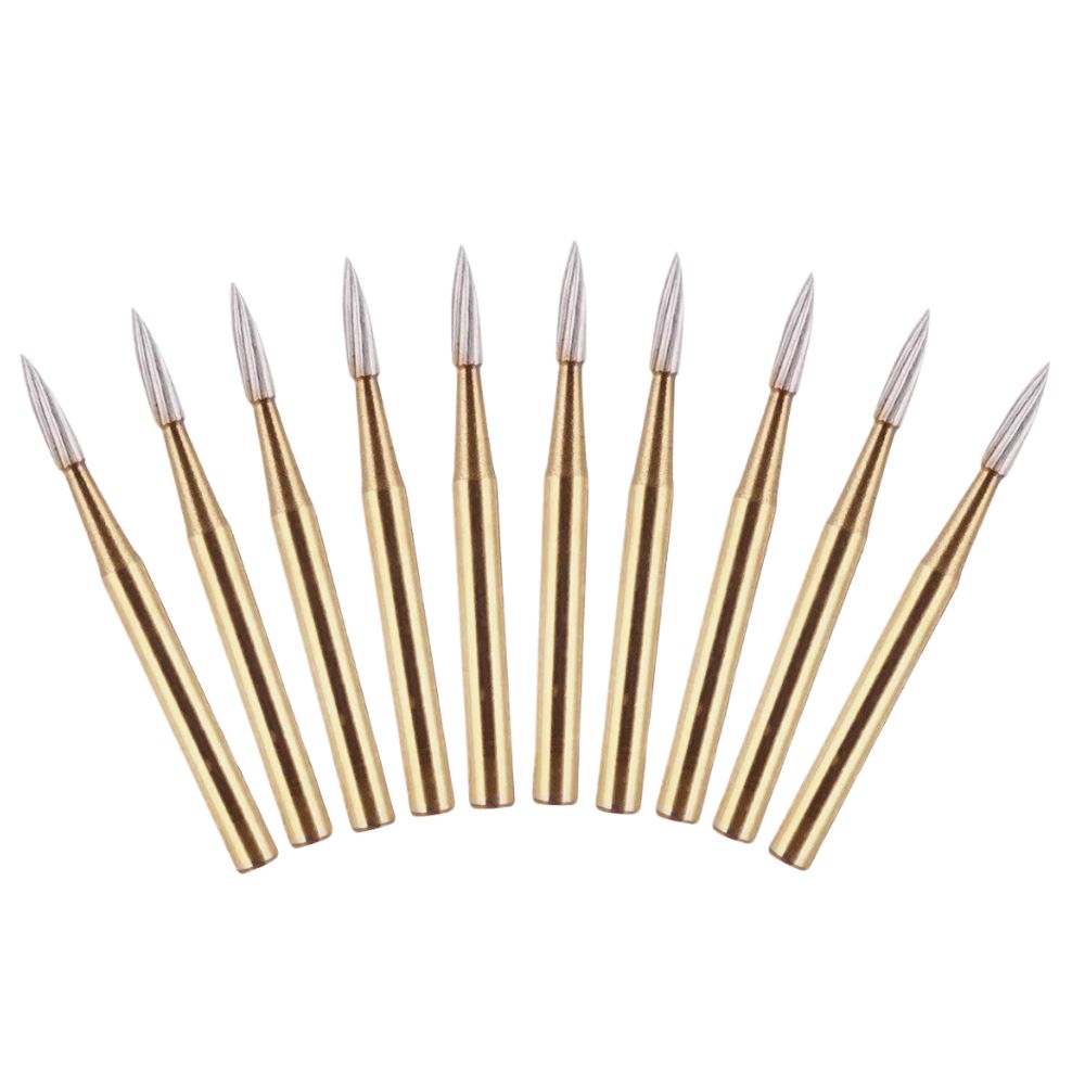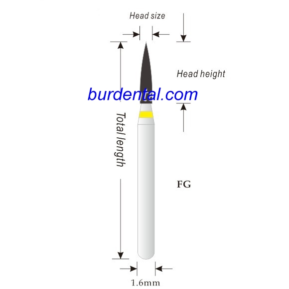فرز مارپیچ زرد (سوپرفاین) مدل شعله شمعی بلند فرم 248 - Dental Carbide Burs 504:این فرز در آماده سازی تاج و Inlay/Onlay و خالی کردن پرکردگیهای قدیمی مورد استفاده قرار میگیرد.فرز الماسی شماره 504 برند DFS ساخت آلمان (فوق نرم) مدل شعله شمعی بلند با فرم248 با قطر014در بسته بندی 2 عددی عرضه می گردد.