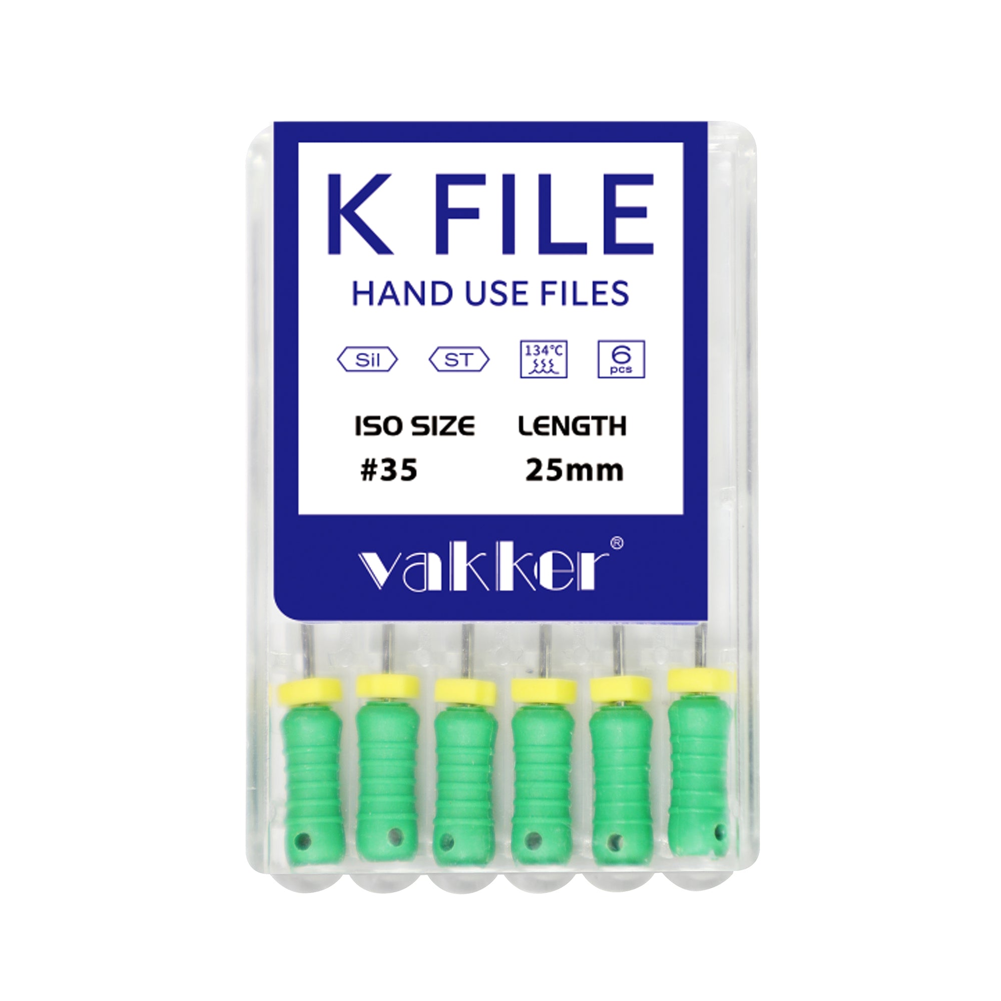 معرفی و خرید K فایل طول 25 - K File:یک مفتول پیچ خورده از جنس فولاد ضد زنگ میباشد.برای پاکسازی و شکل دادن کانال دندان استفاده میشود.حداکثر مقاومت در برابر شکستگی و انعطافپذیری را دارد.نوک بدون برش آن باعث میشود ابزار به راحتی در امتداد کانال هدایت شوند.K فایل طول 25 برند IMDدر سایزبندی 10, 15, 20, 25, 30, 35, 40 , Ass 15-40 و در بستهبندی 6 عددی عرضه میگردد.***** برای خریدفایل دستی دندانپزشکیبا بهترین قیمت کلیک کنید ******** خرید بهترینابزار دندانپزشکیبا کیفیتی تضمینی تنها در دندانت ****