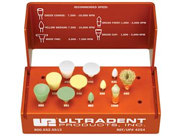 توضیحاتبسیاری از افراد به مطبهای دندانپزشکی جهت زیبایی دندانها اقدام میکنند. کامپوزیتها یا ونیرها یکی از مادههایی هستند که دندانپزشک به واسطه آن میتواند زیبایی خاصی را به دندانها هدیه کند و معمولا بعد از اینکه دندانپزشک، کامپوزیت، ونیر و یا آمالگام را بر روی دندانها قرار میدهد، از پولیش و پرداخت برای صاف کردن سطح دندانها و براق کردن آنها استفاده میکند.ابزارهای متفاوتی برای پولیش و پرداخت استفاده میشود که مهمترین انها شامل موارد زیر است:دیسک پرداختنوار پرداختبرس برساژعلت استفاده از پرداخت پس از کامپوزیتهایکی از کارهای مهمی که پس از استفاده از کامپوزیت بر روی دندانها استفاده میشود، پولیش سطح دندانها است، زیرا این عمل نه تنها به زیبایی بیشتر دندانها کمک میکند، بلکه از لحاظ درمانی نیز بسیار موثر خواهد بود. اگر سطح دندانها پولیش نشود، به راحتی پلاکهای دندانی میتوانند بر سطح دندان جمع شوند و مشکلاتی دیگر نیز به وجود میآید که شامل:تحریک لثهسوزش لثهپوسیدگی مجدد دندانسایش بیشتر دندانهامولت پرداخت کامپوزیت سبز سخت 1 عددی اولترادنتاین محصول ساخت کشور آمریکا است. با استفاده از این مولت که در 3 نوع مختلف طراحی شده است، میتوانید فینیشینگ و پالیشینگ کامپوزیتها و سرامیکهای دندانی را به راحتی انجام دهید. این مدل از مولت پرداخت با سختی بالا طراحی شده است و برای تراش کامپوزیتهای سخت مناسب است. این محصول از قابلیت اتوکلاو برخوردار است.طرز استفاده مولتهای پرداخت کامپوزیت اولترادنت1. در ابتدا از رابر سبز coarse استفاده میکنید و هر گونه ناصافی بزرگ را به طور کامل حذف میکنید.2. سپس با استفاده از رابر زرد رنگ medium نواحی ناصاف دیگر را صاف میکنید.3. در نهایت با یک رابر سفید رنگ نرم Fine سطح را فینیش میکنید.4. در پایان نیز از رابر آبی استفاده میکنید.مشخصاتانواع مولت پرداخت کامپوزیت اولترادنتکاپ شکل (کاسهایی شکل) , پوینت شکل (شعلهایی شکل) , دیسک شکل