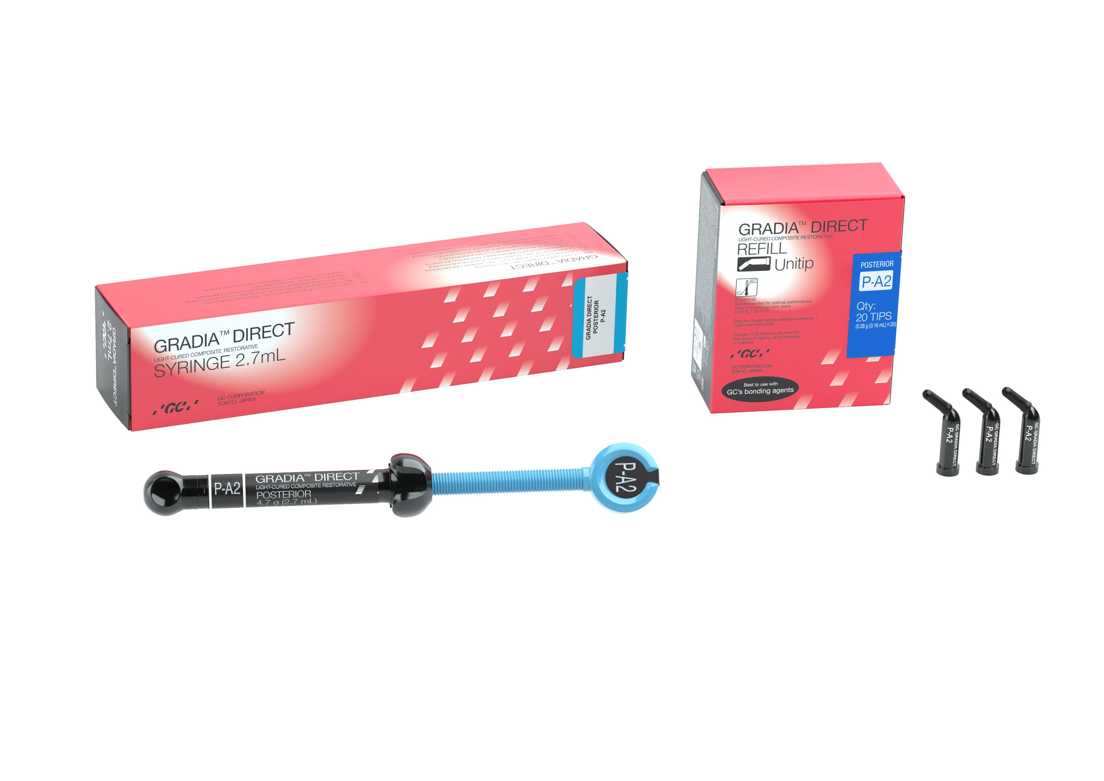 خرید کامپوزیت گرادیا جی سیGradia Directکامپوزیت یکی از مهمترین مواد ترمیمی در حوزه دندانپزشکی است که به دلیل استفاده گسترده، امروزه شاهد انواع و مدلهای مختلفی از آن هستیم.کامپوزیت گرادیا، ساخت کشور ژاپن یکی از بهترین انواع کامپوزیت موجود در بازار است که میتوان از آن برای یک ترمیم عالی استفاده کرد.این کامپوزیت به صورت یک سرنگ 2.7 میلیمتری به فروش میرسد و شیدهای مختلفی دارد که شما میتوانید بسته به نیاز خود آنها را انتخاب کنید.کامپوزیت گرادیا جی سی از چه موادی تشکیل شده است؟این کامپوزیت نوعی کامپوزیت میکروهیبریدی بوده و نیز شامل ماتریکس میکروفیلد، ذرات سیلیکا و فیلرهای از پیش پلیمر شده (Pre-Polymerised) است. ترکیبات این کامپوزیت سازگاری بسیار خوبی با ساختار دندان طبیعی دارد و یک ترمیم کاملا نچرال ایجاد میکند.مزایای خرید کامپوزیت گرادیا جی سی ژاپنساختار ذرات تشکیلدهنده این کامپوزیت به گونهای است که پرتوهای نور را در چندین جهت مختلف منعکس میکند. همین مساله باعث ایجاد رستوریشنی کاملا نامرئی با باقیمانده ساختار دندان میشود. به این ترتیب شما میتوانید به کمک این کامپوزیت، دندانهای بیمار را به طبیعیترین شکل ممکن ترمیم کنید.خصوصیات کامپوزیت گرادیا جی سیGradia Directاز خصوصیات مهم این کامپوزیت میتوان موارد زیر را نام برد:پولیشپذیری عالیمقاومت بالا در برابر فشارهای اکلوزالیمقاوم در برابر سایش و نیروهای حاصل از جویدندوام و ماندگاری بالاعدم چسبندگیتنوع رنگی بالاشکلدهی و فرمپذیری عالیویسکوزیته مناسبعدم تغییر رنگ در طول زمانحساسیت پایین نسبت به نور چراغ یونیتدارای خاصیت آفتابپرست یا همان Chameleon effect به نام “invizi-fx” و ایجاد یک ترمیم فوقالعاده طبیعیایجاد سطحی یکدست و درخشاناز مزایای بزرگ این کامپوزیت، امکان استفاده به صورت تک رنگی و چند رنگی است. معمولا توصیه میشود برای ترمیم قسمتهای قدامی از ترکیب 3 رنگ و برای ترمیم قسمتهای خلفی از ترکیب 2 رنگ استفاده شود.کاربردهای کامپوزیت گرادیا جی سی ژاپناز کامپوزیت گرادیا جی سی میتوان برای موارد زیر استفاده کرد:بستن دیاستمقابل استفاده در ترمیمهای قدامی و مستقیم کلاس V، IV، III، II و Iقابل استفاده برای ترمیمهای لمینت ونیرقابل استفاده در ترمیمهای طولانی مدتقابل استفاده در پوسیدگیهای Wedge-shapedقابل استفاده بر