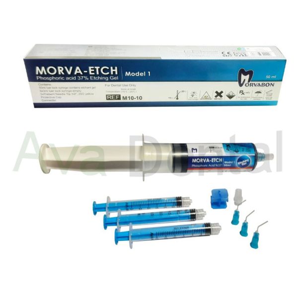 توضیحاتنحوه کار این اسید اچ به این صورت است که در بخش مینای دندان چند فضای میکروسکوپی ایجاد می کند، سپس عامل باندینگ جریان می یابد و قدرت چسبندگی و باندینگ افزایش پیدا می کند. ویسکوزیته Morva-Etch سرنگی بسیار مناسب است.اسید اچ سرنگی 37% مروابن عمر دوام متریال را بالا می برد، سطح مینای دندان را از آلودگی ها پاک نموده و لایه اسمیر و پلیکل ها را پوشش می دهد. این ژل با ممانعت از اچ بیش از اندازه، سبب کاهش حساسیت می گردد.رنگ اسید اچ مروا-اچ،آبیاست که کنتراست بالایی دارد؛ پس متمایز با رنگ دندان بوده و دقت دندانپزشک را به حداکثر می رساند. همچنین به علت وجود کلرهگزیدین کاربرد آنتی باکتری دارد.