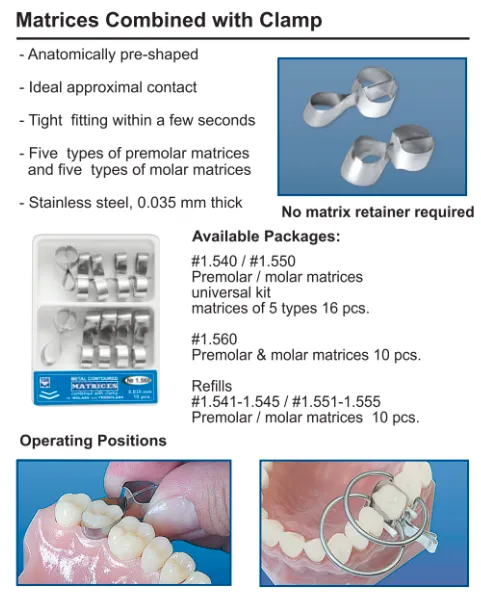 توضیحات• shape 1 (one central ledge)3 pcs.• shape 2 (two central ledges)3 pcs.• shape 3 (right ledge)5 pcs.• shape 4 (left ledge)5 pcs.for molars:• shape 1 (one central ledge)3 pcs.• shape 2 (two central ledges)3 pcs.• shape 3 (right ledge)5 pcs.• shape 4 (left ledge)5 pcs