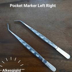 پنس پاکت مارکر - Pocket Marker Tweezer:در معاینه دندان استفاده می شود.با استفاده از پنس پاکت مارکر می توان عمق بافت های نرم اطراف دندان و فاصله دندان با استخوان های اطراف را ارزیابی کرد.می تواند با دقت لازم بدون اینکه به بافت های نرم و استخوان ها و دندان های دیگر آسیبی برساند به درمان بپردازد.پنس پاکت مارکربرند دنتال دیوایسدر دو مدل سمت راست و چپ وبا جنس استیل ضد زنگ عرضه می گردد.
