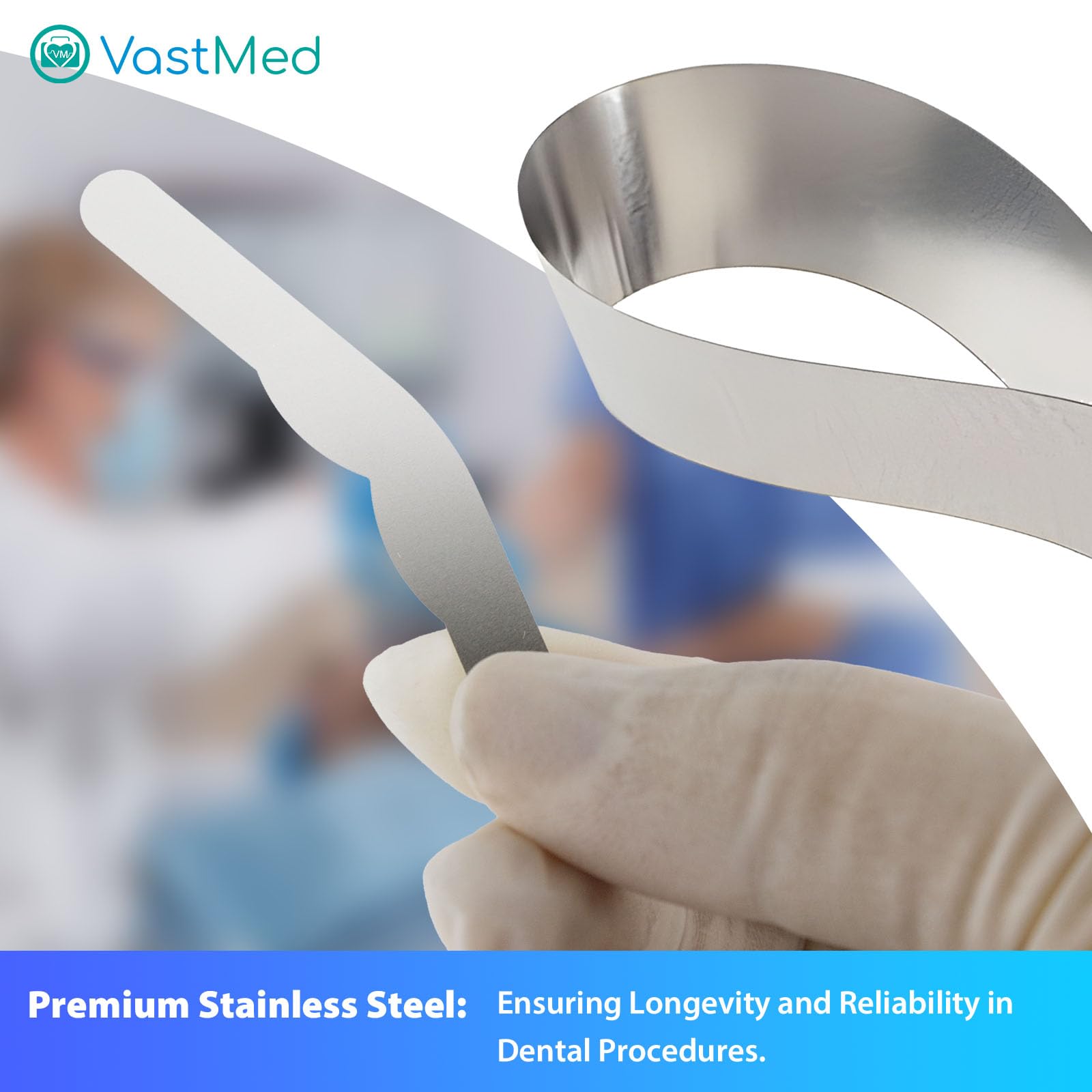 نوار ماتریکس لوپدار - Adult Mod Narrow Matrix Band:این نوار ماتریکس برایجایگزینی دیوارههای کناری از دست رفته دندان و متراکم کردن مواد ترمیمی در حفرههای کلاس به کار میرود به این معنی کهدور تاج دندان بسته میشود تا مواد ترمیمی را محدود کند تا در یک حفره آماده تطبیق دادن شوند. نوار ماتریکسهای هانینکرات بسیار باریک هستند و مقاومت کششی بسیار مناسبی دارند. از سایر ویژگیهای این محصول جنس استیل ضد زنگ آن است که باعث میشود بتوان بدون نگرانی بابت زنگ زدگی و یا خوردگی به صورت ایمن این محصول را داخل دستگاه اتوکلاو قرار داد و یا با مواد ضدعفونی کننده استریل کرد.نوار ماتریکس لوپدار (Adult Mod Narrow Matrix Band) از برند AKO در بستههای 144 عددی در فروشگاه اینترنتی دندانت عرضه میشود.