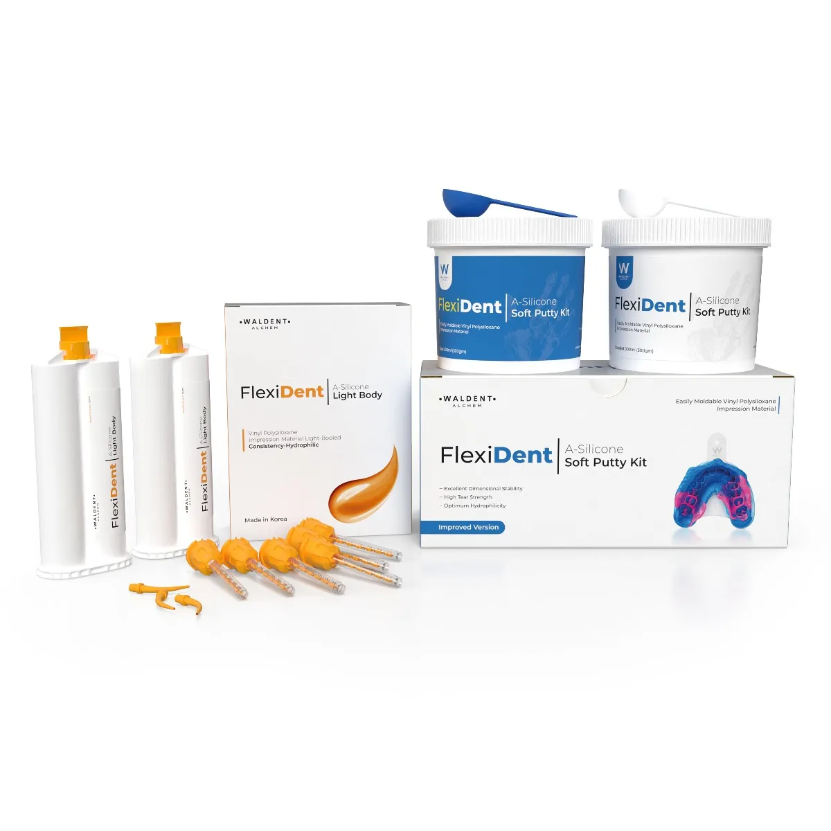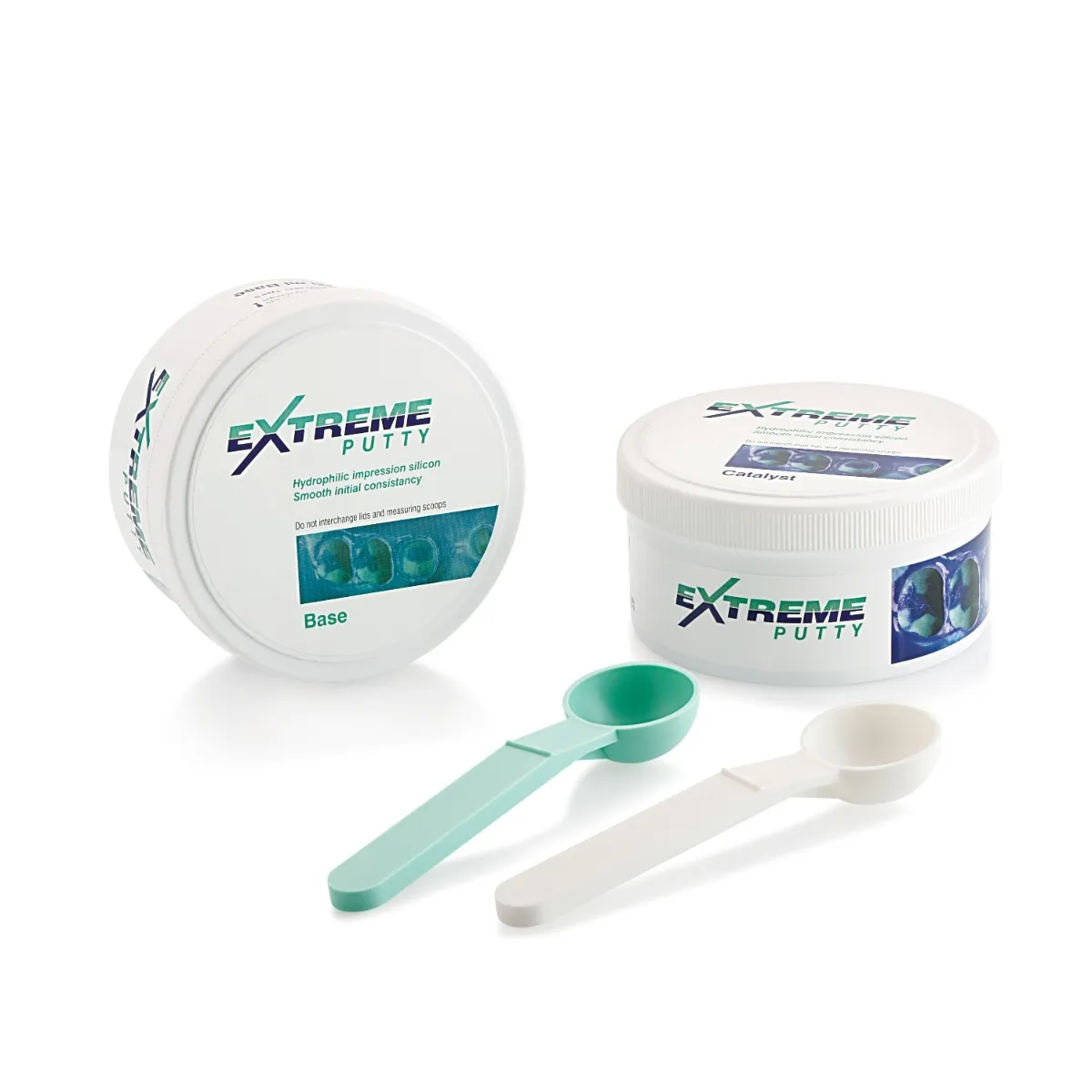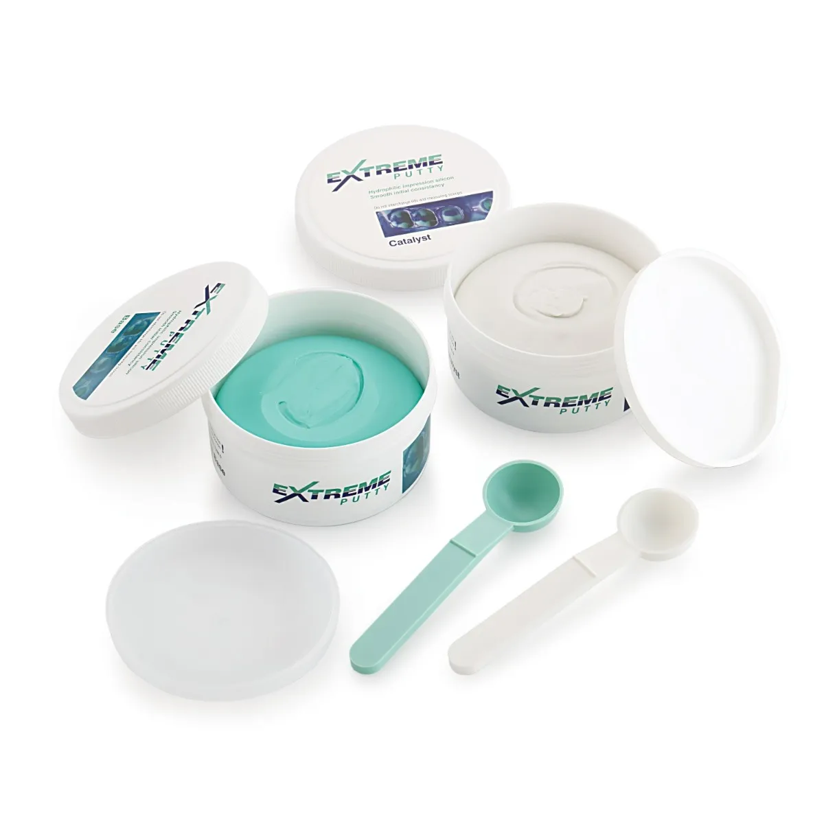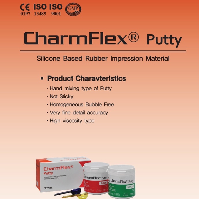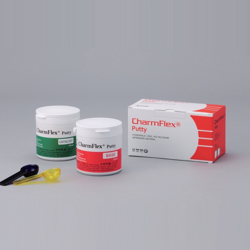 توضیحاتپوتی قالب گیری – (Putty+Putty Soft) Charm Flex:جهت قالبگیری از دنچر پارسیل و کامل، روکش، بریج، اینله و آنله مورد استفاده قرار میگیرد.مادهای از انواع پوتی میباشد که برای ثبت صحیح و دقیق جزئیات کاربرد دارد.دارای حداقل انقباض ناشی از سفت شدن میباشد.از ویژگیهای این محصول میتوان به عدم چسبندگی، انجام مخلوط کردن در دست کاربر، همگن بدون حباب و گرانروی بالا (High Viscosity)اشاره کرد.ست قالبگیری DentKist به صورت یک ظرف بیس 280 سیسی به همراه پیمانه اندازهگیری و یک ظرف کاتالیست 280 سیسی به همراه پیمانه اندازهگیری عرضه میگردد.