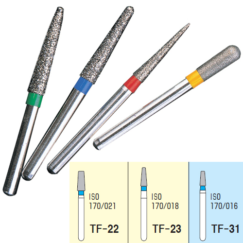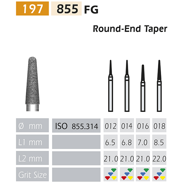 فرز الماسی مدل مخروطی ته صاف توربین 5 عددی - Flat End Taper 848:این فرز در آماده سازی تاج جهت روکش و Inlay/Onlay مورد استفاده قرار میگیرد.فرز الماسی مدل مخروطی ته صاف توربین برند سانیدر بسته بندی 5 عددی عرضه میگردد.