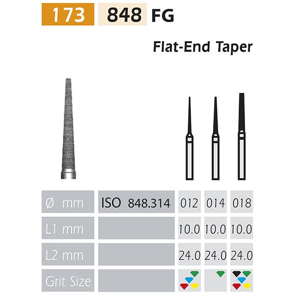 فرز الماسی مدل مخروطی ته صاف توربین 5 عددی - Dental Diamond Burs Flat End Taper 848