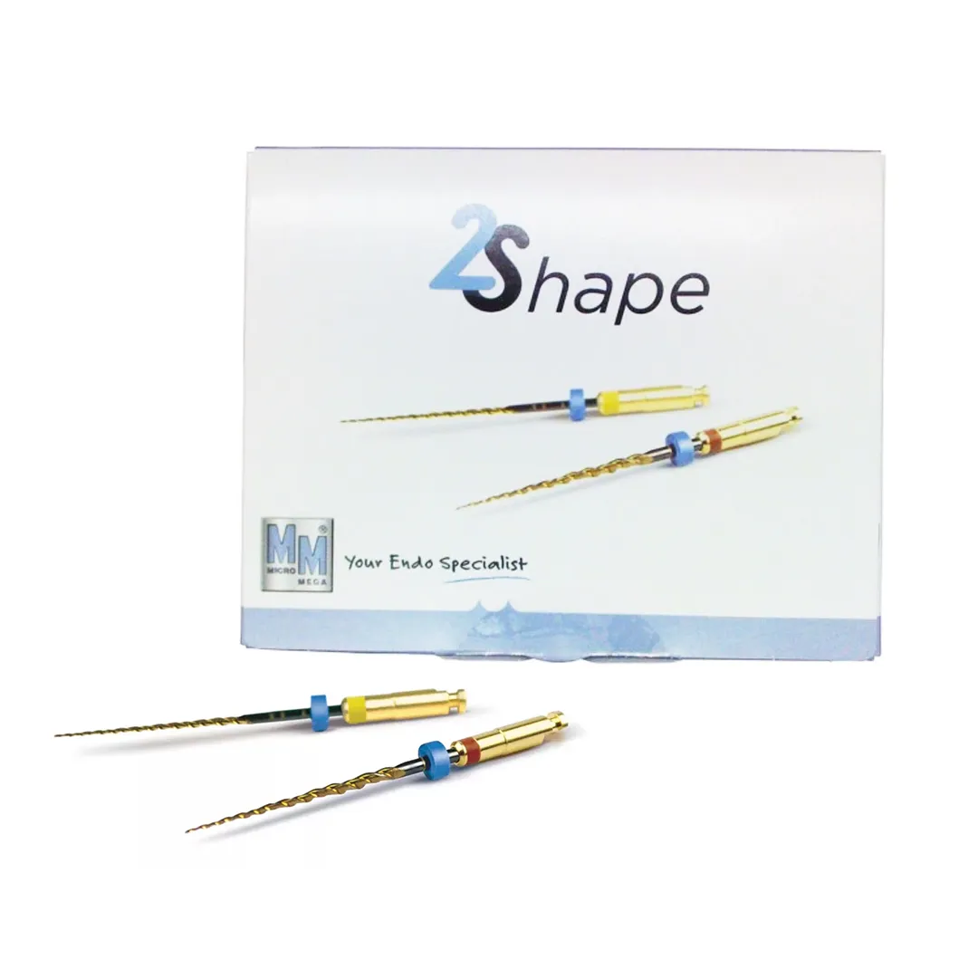 ویژگی های فایل روتاری 2shape :پاکسازی کانال تنها با 2 فایل با حرکت درجه CONTINUOUS ROTATION 360دارای انعطاف پذیری بسیار بالا به لطف پروسه HEAT-TREATMENT و تکنولوژی منحصر به فرد آلیاژدارای CUTTING EFFICIENCY عالی و طراحی منحصر به فرد CUTTING EDGE با سطح مقطع ASYMMETRICAL جهت کاهش استرس بر فایل در کانال وقدرت نفوذ هرچه بیش تربهره گیری از تکنولوژی پتنت شده آلیاژWIREPROTOCOL وکارکرد بسیار آسان (BRUSHING MOTION -حرکت DOWNWARDS – کارکرد طول کانال)مقاومت بالا در برابر CYCLIC FATIQUE و TORSION FATIGUEمحصول کمپانیMICRO MEGAفرانسه