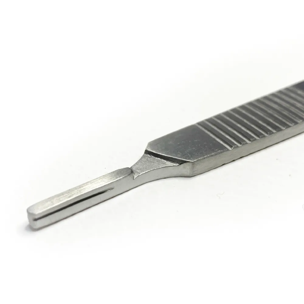 دسته تیغ بیستوری شماره 3 - Scalpel Handles Fig.3:برای جراحی بدن، کالبدشکافی و بعضی مواقع در صنایع دستی کاربرد دارد.در جراحیها برای ایجاد برش ظریف روی بافت و برای شکاف دادن و به طور کلی هرکاری که نیاز به تیغ بیستوری دارد استفاده میشود.دسته تیغ شماره ی 3 که به صورت نازک ساخته شده است، قابل استفاده برای تیغ بیستوری 10،11،12 و15 می باشد.دسته تیغ بیستوری شماره 3 برند پیشرودنتبا جنس استیل عرضه می گردد.
