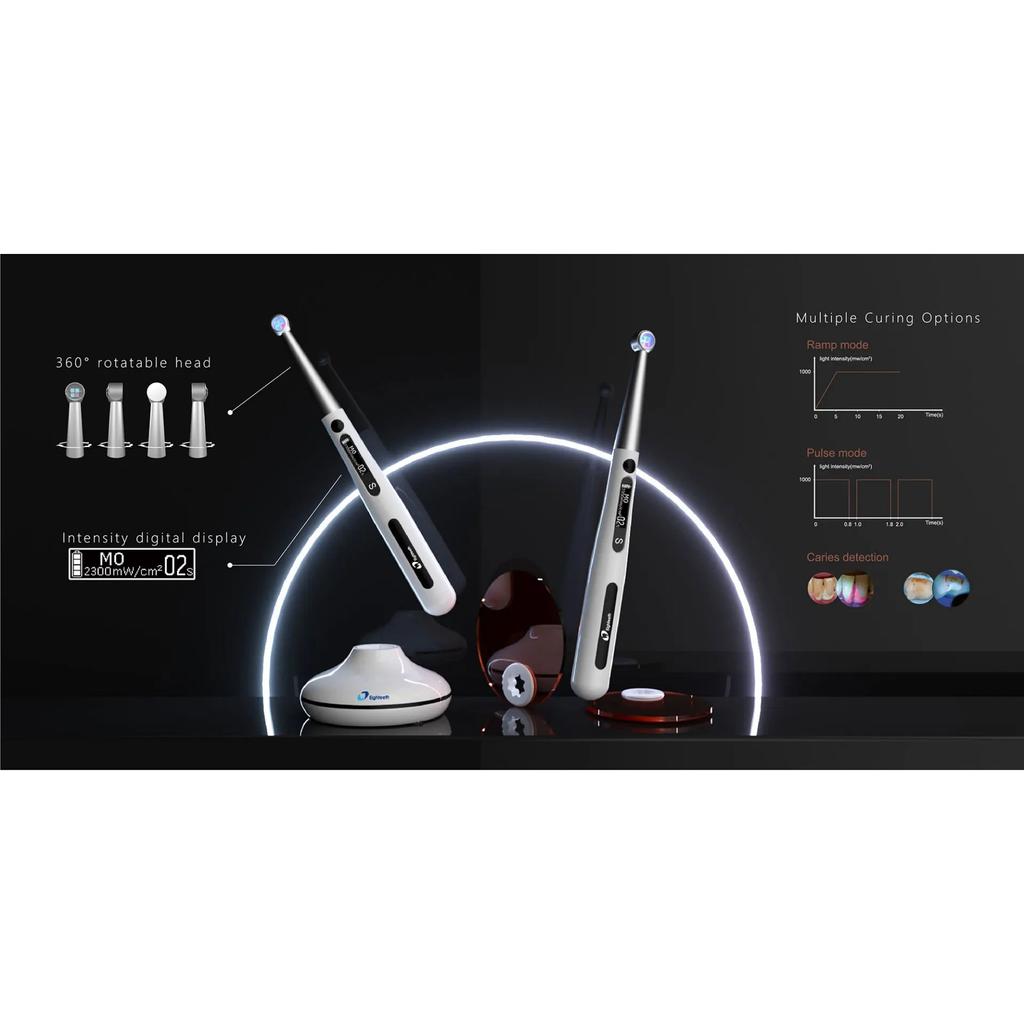 توضیحاتلایت کیور LED بیسیم ایتیس مدل کیورینگ پنCURING PENلایت کیور LED بیسیم ایتیس مدل کرینگ پنCuring Pen نسل جدید لایت کیور کمپانی ایتیس ساخت کشور چین است.کشور چین امروزه در صنعت پزشکی ابزارآلات پیشرفته ای تولید و روانه بازار کرده است.به طوری که با ابزار هایی که در امریکا یا اروپا تولید شده اند قابل رقابت هستند.لازم به ذکر است که باطری استفاده شده در این دستگاه از نوع لیتیومی شارژی است که میتواند ساعت ها شارژ را در خود نگه دارد.مشخصات و ویژگیها:نوع لایت کیور بی سیم خارج یونیتی میباشددارای 4 لامپ LED با عمر بالا برای تشخیص پوسیدگیدارای نشانگر دیجیتال میزان شدتشدت نور دستگاه دارای 4 حالت مختلف از 2300-600 mw/cm2 است.طول موج: 515-430 نانومتردارای مدهای کاری Ramp, Pulse و مد تشخیص پوسیدگیمجهز به هد با قابلیت چرخش 360 درجهعمق و پهنای کیور 10 میلی مترمجهز به باتری قدرتمند: با هربار شارژ برای 1200 بار تابش به مدت 3 ثانیه قابل استفاده است.وزن دستگاه 108 گرمابعاد : 24*21*230 میلی مترمنطبق با استاندارد CE اروپا و ISOبی سیمدارای قابلیت تشخیص پوسیدگیدارای ۱ عدد لایت بنفش رنگ مناسب موارد تشخیصیولتاژ: AC100~240V, 50/60Hzدارای صفحه نمایش LCDدارای ۴ عدد LED آبی رنگ و بنفش رنگطول موج: ۳۸۵ الی ۵۱۵ نانومترشدت نور: ۱۰۰۰mw/cm², ۱۵۰۰ mw/cm², ۲۳۰۰ mw/cm²دارای ۳ برنامه پیش فرض: Ramp, Pulse, Caries Detectionدارای ۳ برنامه قابل تنظیمشدت نور جهت تشخیص پوسیدگی: ۶۰۰mw/cm2باتری با ظرفیت بالا تنها یک نوبت شارژ برای ۱۲۰۰ بار تابش به مـدت ۳ ثانیه با حـــداکثر شدتقابلیت خاموش شدن خودکار