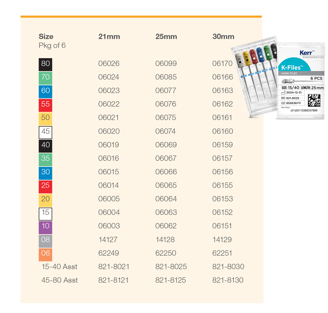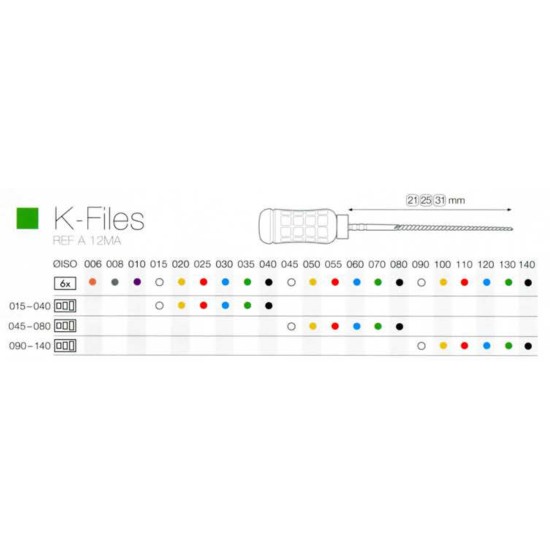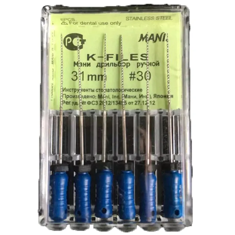 معرفی و خرید K فایل طول 31 - K File:ارگونومیک و انعطافپذیر میباشد.این محصول ساخته شده از استیل ضد زنگ است.K فایل طول 31 برند توماسدر بستهبندی 6 عددی و سایزبندی 8، 10، 15، 20، 25، 30، 35، 40، 45، 50، 55، 60، 70، 80، 40-15 و 80-45 عرضه میگردد.***** برای خریدفایل دستی دندانپزشکیبا بهترین قیمت کلیک کنید ******** خرید بهترینابزار دندانپزشکیبا کیفیتی تضمینی تنها در دندانت ****