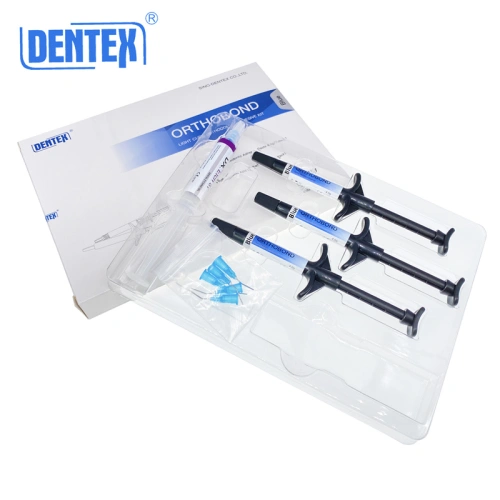 توضیحاتکیت چسب ارتودنسی – OrthoBond:برای چسباندن براکت های ارتودنسی، فلزی، پلاستیکی و سرامیکی مورد استفاده قرار می گیرد.قابلیت لایت کیور با کاهش زمان کاربردی جهت جایگذاری و تنظیم سریع براکت ها بر روی دندان را دارد.قابلیت جایگذاری سریع آرچ وایرها بلافاصله بعد از اتمام کیورینگ براکت ها و دستیابی به استحکام باندینگ بلافاصله بعد از لایت کیور از دیگر ویژگی های این محصول است.براکت ها بسیار محکم به مینای دندان میچسبند و تحمل فشار حدود Mpa20 را در طول درمان دارند.کیت چسب ارتودنسی برند دنتکسدر بسته های حاوی یک عدد پرایمر چسب 3 میلی لیتری، یک عدد خمیر چسب 4 گرمی، یک سرنگ اسید اچ 2.5 میلی لیتری، 20 عدد میکرو براش سایز کوچک، 5 عدد سری نازل عرضه می گردد.