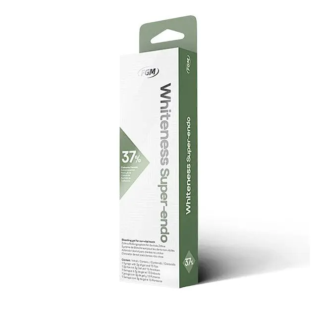 ژل بلیچینگ اندو Whiteness Super Endoیکی از روشهای پرطرفدار برای زیبا کردن دندانها، روش بلیچینگ دندان است. بلیچینگ دندان، به سفید شدن دندانها کمک میکند. با کمک روش بلیچینگ دندان، رنگدانههایی که در طول زمان در دندانها باقی مانده و رنگ دندانها را تغییر دادهاند، از بین میروند. علاوه بر رنگدانهها، عوامل دیگری مانند عوامل ژنتیکی نیز میتوانند موجب تغییر رنگ دندانها شوند.روشبلیچینگ دندانبه متقاضیان استفاده از این روش کمک میکند تا با از بین بردن تغییرات رنگی ایجاد شده در دندانهای خود، لبخندی زیباتر داشته باشند. برای انجام روش بلیچینگ دندان، از لوازم مختلفی استفاده میشود.ارتباط اندو و بلیچینگ دندانیکی از روشهای دندانپزشکی، اندو دندان است. اندو دندان به معنی درمان ریشۀ دندان یا عصب کشی دندان است. دندانی که عصب کشی شده است، باید با در نظر گرفتن نکات و مراقبتهای بهداشتی خاصی نگهداری شود.افرادی که دندانهای آنها عصب کشی شده است نیز میتوانند برای استفاده از روش بلیچینگ اقدام کنند. اما برای استفاده از روش بلیچینگ، برای دندانهایی که عصب کشی شدهاند، مواد خاصی به کار برده میشود.یکی از این مواد، ژل بلیچینگ اندو است. این ژل، توسط برندهای مختلفی تولید و وارد بازارهای مصرفی میشود. یکی از بهترین و پرطرفدارترین برندهای تولید کنندۀژل بلیچینگ اندو، برند FGM است. این برند، ژل بلیچینگ اندو تولیدی خود را به صورت یک کیت بلیچینگ مخصوص دندانهای اندو شده، به بازارهای مصرفی عرضه میکند.ویژگی هایژل بلیچینگ اندوWhiteness Super Endoژل بلیچینگ اندو برندFGMدارای ویژگیها و مزایای زیادی است. از ویژگیهای بارز این ژل میتوان به موارد زیر اشاره کرد:این ژل حاوی کارباماید پروکساید 37% است.این کیت دارای یک سرنگ 3 گرمی است. علاوه بر این سرنگ، 15 سری نیز در این کیت قرار داده شده است. از ژل بلیچینگ اندو در درون این کیت، حدود 70 بار میتوان استفاده کرد.این محصول، توسط کشور برزیل تولید شده و وارد بازارهای مصرفی میشود.دارای خاصیت قوام پذیری عالیقیمت مناسب و مقرون به صرفهدارای ترکیب سازگار با آب (این خاصیت باعث میشود این ژل بعد از اتمام درمان، به راحتی از پالپ دندان جدا شود)امکان استفادۀ راحت از محصول بدون نیاز به میکس کردن موادقابل استفاده برای دندانهای روت کانال شدهدارای قابلیت ترکیب شدن