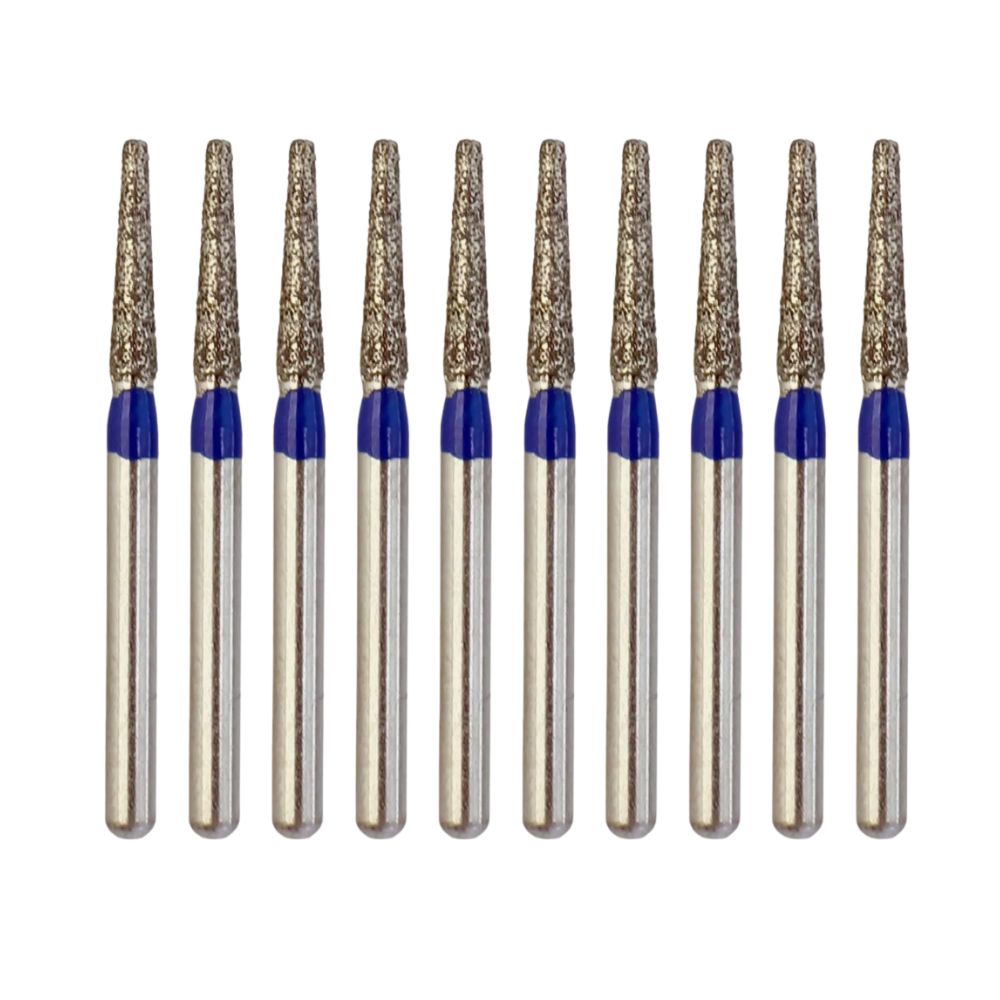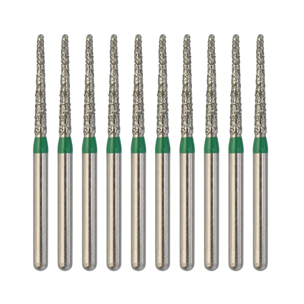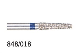فرز الماسی مدل مخروطی ته صاف توربین فرم 184 - Dental Diamond Burs Flat end taper 848:فرزهای الماسی محصول کمپانی نامآشنایلاستردنتساخته شده ازمتریال فرانسویاست. کد 848 آن با نوار سبز رنگ که معرف کارکرد آن (مخصوص تراش) است ذراتی معادل با 151 میکرومتر دارد و از جمله فرزهای زبر به شمار میرود.فرز الماسی کد 848 با مدل مخروطی ته صاف توربین برند DFS در سایزهای 012، 014، 016 و 018 و بستههای 5 عددی در فروشگاه اینترنتی دندانت عرضه میشود.