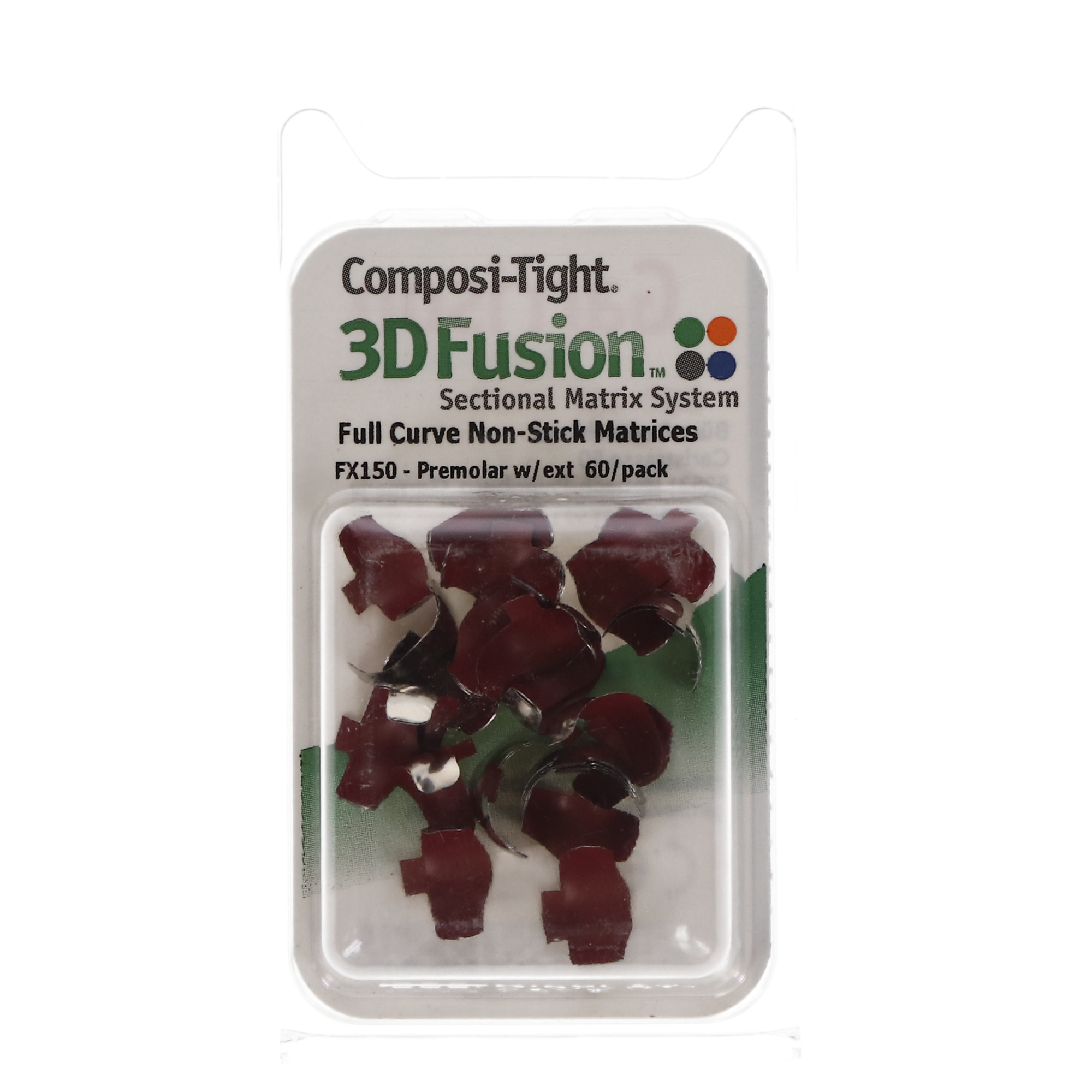 ماتریکس سکشنال اکستنشن دار - Extended Sectional Matrix 3d Fusion :این محصول به بازسازی آناتومی دندان و حفظ نقاط تماس آن با دندانهای اطراف کمک میکند.ماتریکس سشکنال اکستنشن دارمدل 3d Fusion از برند امریکایی گریسون در دو اندازهکوچک قرمز رنگ و بزرگ آبی رنگ در بستههای 30 عددی و 60 عددیدر فروشگاه اینترنتی دندانت عرضه میشود.