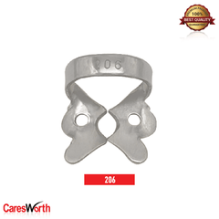 توضیحاتجنس آلیاژ: استیلبرند : دنتال دیوایس (Dental Devices)کلمپ: ۲۰۶کارایی: کلمپهای دندانپزشکی وسایل فلزی یا گیرههایی هستند که به موقعیت تاجی دندانها متصل میشوند و باعث گیر کردنرابردمبه دندانها میشود. این کلمپها بر روی دندانها قرار میگیرند و با تعبیه شدن باز و بسته شدن دهان را کنترل میکنند.استفاده برای دندان پرمولر بالا و پایینطول :–سانتی مترعرض : —سانتی مترسایز: تک سایز