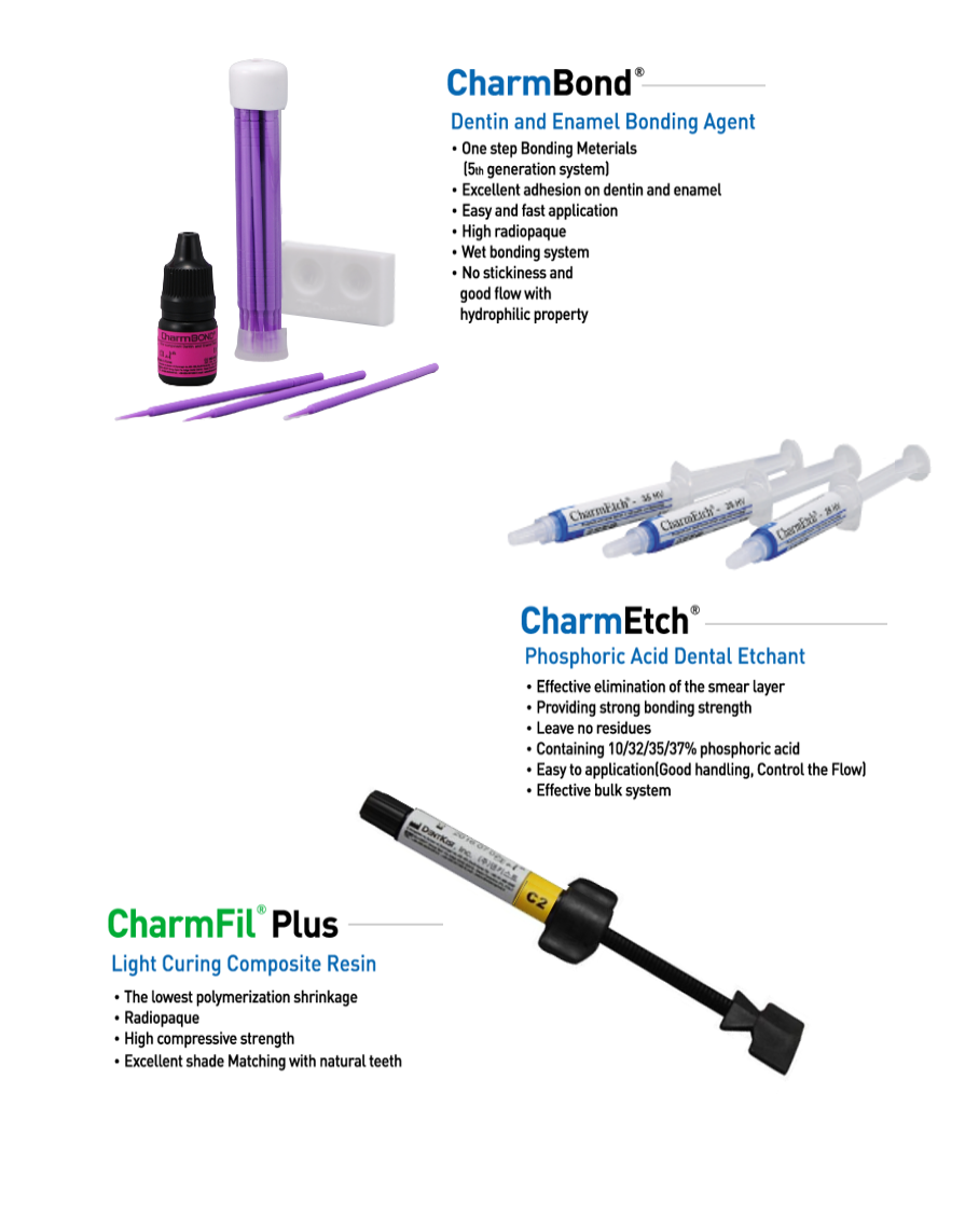 توضیحاتکیت کامپوزیت نانو هیبرید Charm Fil Plus Kit – Dentkistبسته بندی :kit : چهار عدد تیوپ 4 گرمی + باندینگ + اسید اچ +سایر ملحقات