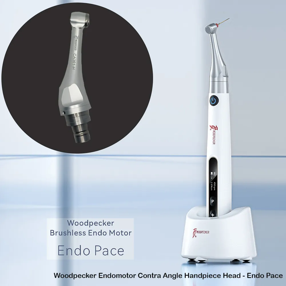 توضیحاتظریفترین و سبکترین موتور روتاری وودپکر (وزن هندپیس تنها 106 گرم)قابلیت چرخش 360 درجه را دارد.قابلیت اتصال همزمان به اپکس فایندر Woodpex V و قطع اتوماتیک با نزدیک شدن به انتهای کانالزوایه Reciprocal قابل تنظیم 10 درجه ای بین 20 تا 400 درجهدارای 9 حافظه برای سهولت کار با تمام فایل های روتاریسرعت قابل تنظیم بین 100 تا 1500 دور در دقیقهگشتاور قابل تنظیم بین 0.4 تا 4.2 نیوتن بر سانتی متر مربعموتور براش لس Brushless القایی است.کنترا آنگل بسیار کوچک (گیربکس 1:6) و سهولت استفاده در دندانهای عقب را دارد.به مراتب دقیقتر و پیشرفتهتر از مدل های قدیمی خود می باشد. و به همین دلیل در بین دندانپزشکان محبوب می باشد و امروزه یکی از تجهیزات اصلی دندانپزشکی می باشد.این دستگاه یکی از سبکترین روتاری های شرکت وودپکر می باشد.ظریف ترین و سبک ترین روتاری وودپکر که وزن آن 106 گرم می باشد.یکی از ویژگیهای این محصول قابلیت اتصال همزمان به اپکس فایندر Woodpex V می باشد.