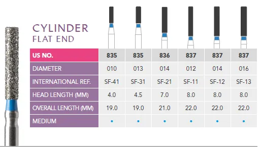 معرفی و خرید فرز الماسی مدل استوانهای ته گرد توربین - Round End Cylinder 880:این فرز در خالی کردن پرکردگیهای قدیمی مورد استفاده قرار میگیرد.در آماده سازی کانال ، تاج دندان و Inlay/Onlay کاربرد دارد.از دیگر ویژگیهای این محصول میتوان به ترمیم سرامیک اشاره کرد.فرز الماسی مدل استوانهای ته گرد توربین برند سانی در بسته بندی 5 عددی عرضه میگردد.****خرید تجهیزات دندانپزشکیبا برندهای معتبر و عالی در سایت دندانت ****