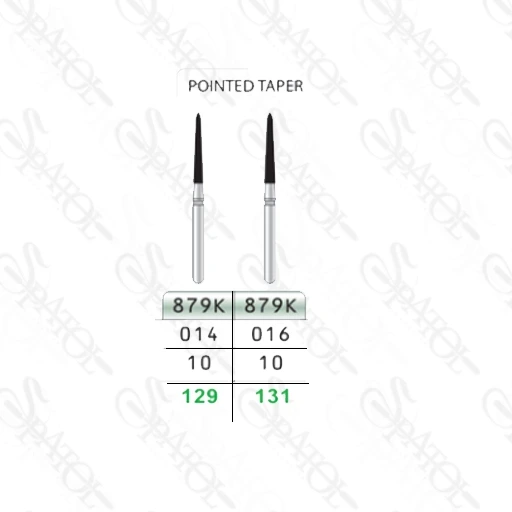 توضیحاتفرز الماسی چمفر 10 میل 879 تیزکاوان TEESKAVANبرای تراش با فینیش لاین چمفر هنگام تهیه روکش های فول متال یا متال سرامیک (PFM) کاربرد دارد.با قدرت سایندگی مختلف از خشن (Coarse) تا بسیار نرم(Superfine).درجه سایندگی با نوارهای رنگی روی بدنه فلزی را با استفاده از حروف اختصاری بعد از شماره فرز الماسی مشخص میشود.فرز های بسیار نرم برای اتمام ترمیم استفاده میشود.در سایز و طرح های مختلف در دسترس است.خرید فقط در بسته بندی های 4 عددی میباشد