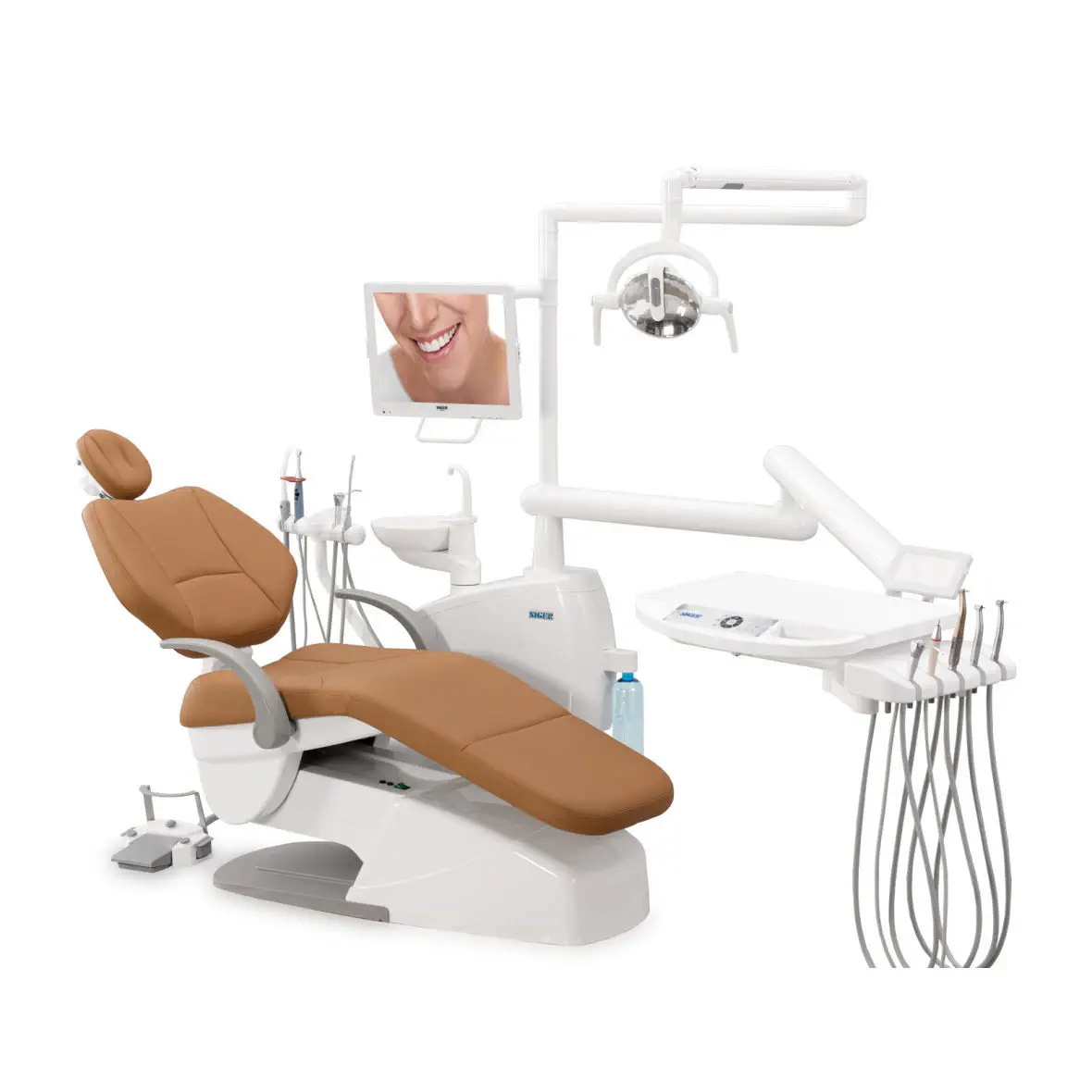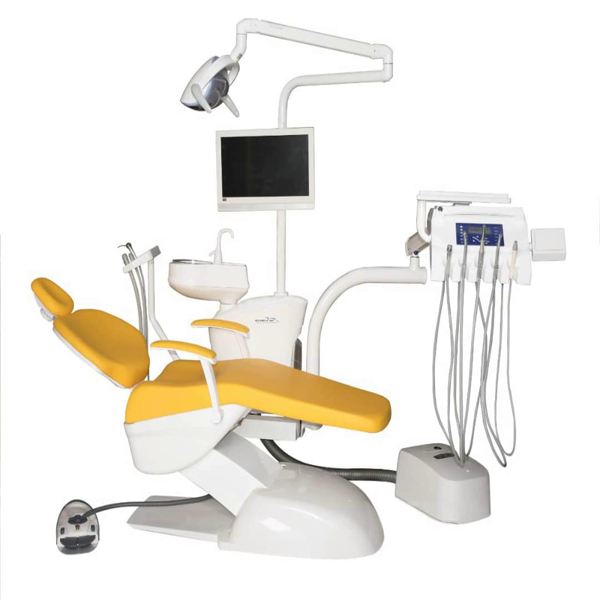 توضیحاتطراحی زیبا و جذابتابلت دستیار با قابلیت کنترل کامل صندلی و چراغموتور جکی 24 ولت 8000 نیوتن لیناک دانمارک، بی صدا و حافظه دارزیر سری 2 محوره با قابلیت تنظیم برای کودکانهمراه با تابورهیونیت صندلی دندانپزشکی شیک طب مدل SC100یونیت صندلی دندانپزشکی شیک طب یکی ازتجهیزات دندانپزشکیاست که جزء ابزار اصلی دندانپزشک در درمان بیماران دهان و دندان میباشد بنابراین انتخاب یک یونیت دندانپزشکی استاندارد و با کیفیت سبب آرامش پزشک و رضایت بیمار و افزایش کیفیت درمان می گردد .یونیت دندانپزشکی ابزار های لازم را در اختیار پزشک قرار می دهد و به طور کلی از 4 قسمت صندلی ، جعبه باکس ، چراغ رون و کراشوار (لیوان پرکن- دستشویی و ساکشن) تشکیل شده است . خرید یونیت صندلی شیک طب ، یونیت تابلت 4 شلنگ از بالا از پایین مطمئنا گزینه مناسبی برای شما خواهد بود ، محصولی که از کار کردن با آن لذت خواهید برد .ویژگی ها و مشخصات فنی :طراحی زیبا و جذابتابلت دستیار با قابلیت کنترل کامل صندلی و چراغموتور جکی 24 ولت 8000 نیوتن لیناک دانمارک، بی صدا و حافظه دارزیر سری 2 محوره با قابلیت تنظیم برای کودکانهمراه با تابورهروکش صندلی با کیفیت و قابل شستشو در رنگ های مختلفپدال چند منظوره با قابلیت کنترل صندلی و چراغچراغ 22.000 لوکس LED طرح فارو همراه با سنسور No Touch و قابلیت تنظیم شدت نوردارای آبگرمکن، مخزن آب اضطراری و تابورهصندلی شیک طب:یکی از تجهیزات و لوازم دندانپزشکی اصلی و مهم در حرفه دندانپزشکی یونیت صندلی می باشد .یونیت صندلی دندانپزشکی شیک طب دارای 1 سال گارانتی تعمیر و 10 سال خدمات پس از فروش می باشد.دستگاه یونیت دندانپزشکی شامل یونیت ، صندلی ، چراغ و کراشوار می باشد . یونیت دندانپزشکی باید مطابق با استاندارد عمومی الکتریکی IEC60601-1 باشد و کلیه سطوح ظاهری یونیت ، چراغ و صندلی باید به گونه ای باشد که در اثر شستشو با مواد شوینده و ضدعفونی کننده ، از نظر خوردگی ماهیت آنها غیرقابل تغییر باشد و میکروب و مواد آلاینده به داخل آن نفوذ نکند .شاسی صندلی ، پشتی صندلی ، تشک صندلی ، زیر سری و زیردستی از اجزای اصلی صندلی دندانپزشکی می باشند . شاسی سه قسمت فوقانی ، میانی و تحتانی دارد که توسط لوله های فولادی و بوش های برنزی حرکات تاشونده و بدون لرزش دارند .پشتی صندلی از جنس فایبرگلاس بوده و توسط موتور تغییر زاویه پش