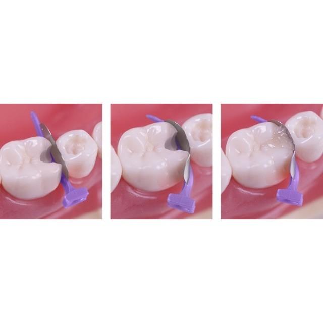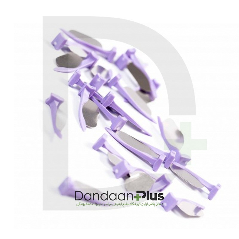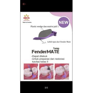 فندرمیت تمپ - FenderMate Temp:این محصول از ماتریس استیل Stainless و وج پلاستیکی ساخته شده است و به راحتی به محیط وارد شده و باعث فشرده کردن لثه و قطع خونریزی و در نهایت آماده سازی سطح زیر لثهای میشود.فندرمیت تمپ (FenderMate Temp) برند دایرکتا (Directa) با رنگ بنفش و در بستههای 18 و 100 عددی در فروشگاه اینترنتی دندانت عرضه میشود.