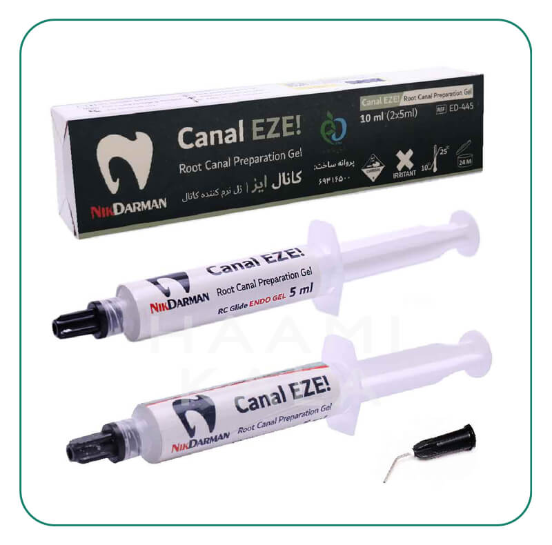 توضیحاتمعرفی:ژل اندو نیک درمان با نام تجاری آرسی گلاید® ژل، بر پایه EDTA نوزده درصد و با pH خنثی برای آماده سازی شیمیایی-مکانیکی کانال ریشه استفاده می شود. ادتا موجود در این محصول با حذف نمک های کلسیم و پالپ از کانال ریشه به تمیز کردن سریعتر و شکل دهی کانال کمک می کند. مواد روان کننده موجود در محصول ورود ابزار به داخل مجرا را تسهیل کرده و احتمال شکستن ابزار را به حداقل می رساند. ماده EDTA به عنوان عامل اصلی شلاته کننده با یونهای کلسیم دیواره کانال اتصال برقرار کرده و باعث جداسازی آن می گردد. محصول با حدف موثر لایه اسمیر از سطح عاج باعث نرم شدن عاج و تمیز شدن کانال می گردد.ترکیبات:EDTA، آب، نگهدارنده و تغلیط کننده.روش استفاده:حفره دندان را باز کرده و با ابزار مناسب دسترسی به کانال های ریشه را فراهم کنید.کانال ریشه را از بقایای پالپ تخلیه کنید.فایل یا ابزار اندو را به محصول آغشته کرده و وارد کانال ریشه کنید.کانال را با شستشو با هیپوکلریت سدیم (HYPONIC) انجام دهید.کانال ریشه را با سرم فیزیولوژیک شستشو دهید.با ساکشن، کن کاغذی و یا ابزار مناسب کانال را خشک و از ذرات باقی مانده تخلیه کنید.هشدار و موارد منع مصرف:|فقط توسط دندانپزشک استفاده شود.|برای بیمارانی که به اجزای محصول حساسیت دارند استفاده نشود، اگر واکنش آلرژیک درماتیت ایجاد شد با پزشک مشورت کنید.|همیشه جریان مواد را قبل از اعمال داخل دهانی بررسی کنید، در صورت وجود مقاومت سرسوزن را تعویض کرده و مجددا بررسی کنید.|دقت کنید محصول پس از اتمام درمان در کانال ریشه باقی نماند، ممکن است منجر به نرم شدن بیش از حد عاج شود.|در صورت تماس با چشم، فوراً با آب فراوان بشویید و در صورت تداوم سوزش به پزشک مراجعه کنید.|در هنگام استفاده از این محصول برای کودکان به دلیل خطر نرم شدن بیش از حد بافت های سخت دندان دقت ویژه ای داشته باشید.شرایط نگهداری:|در بسته بندی اصلی در دمای اتاق (25 درجه سانتی گراد) دور از دسترس کودکان و تابش نور آفتاب نگهداری شود.|پس از مصرف درب را ببندید.