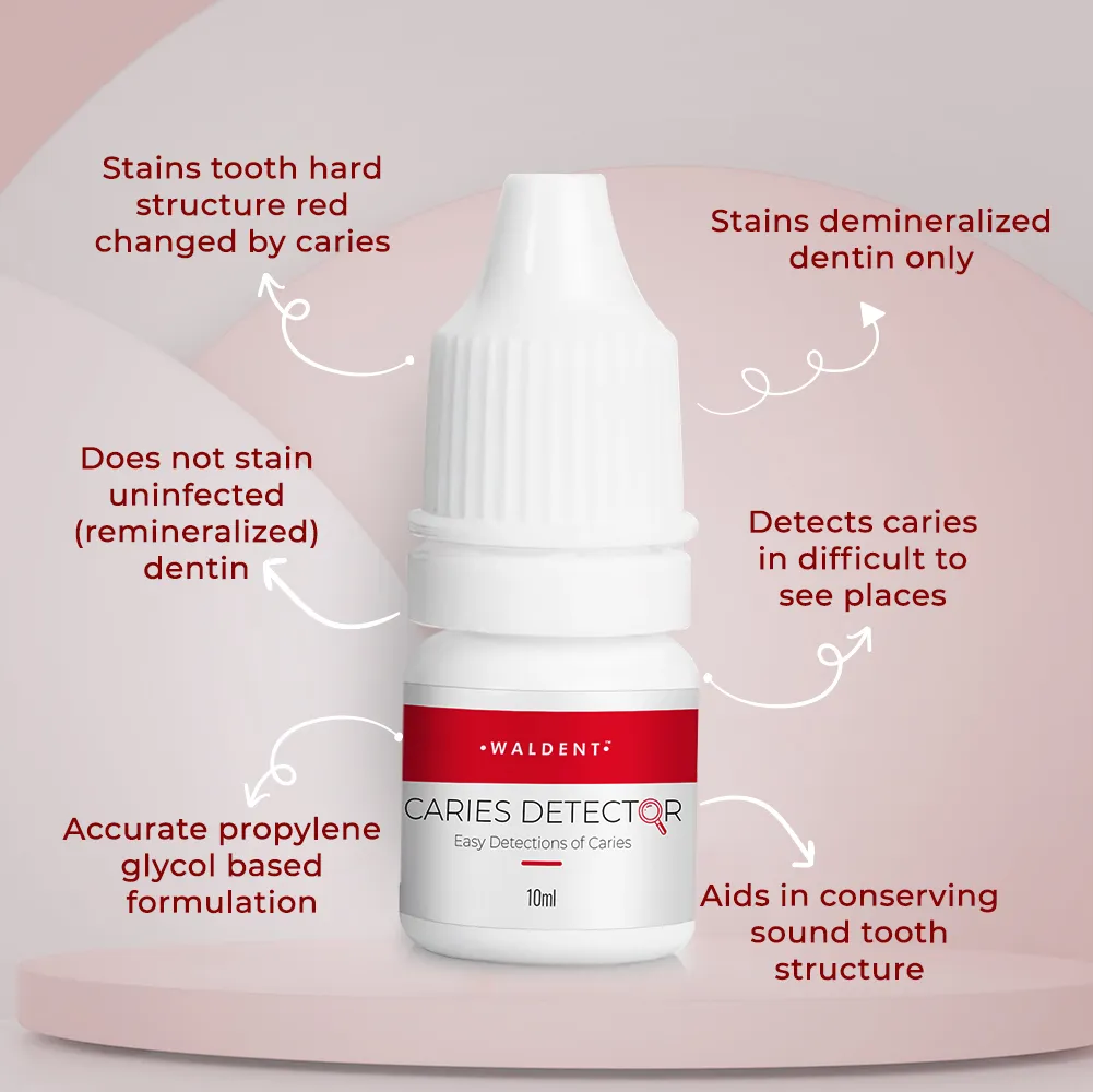 دای آشکارساز پوسیدگی - Caries Detector Dye:دای آشکار ساز کبالت یک لایه سطحی از عاج پوسیده را رنگ می کند و آن را از لایه زیرین عاج متمایز می کند. این رنگ پذیری لایه ای، باعث برداشت حداقلی از عاج پوسیده شده و به عنوان یک راهنمای مفید در برداشت پوسیدگی محافظه کارانه عمل می کند.کاربردها:بررسی برداشت کامل پوسیدگی هاشناسایی پوسیدگی های باقیمانده پس از برداشت پوسیدگی های واضح به خصوص در نواحی زیر کاسپ ها و یا در روش برداشت کامل پوسیدگی محیطی (peripheral seal zone)تعیین مرز مشخص بین عاج سالم و عفونی خصوصا در موارد تشکیل عاج ثانویه که رنگی متفاوت دارد.پیدا کردن اریفیس کانال ها در سطح پالپ چمبرپیدا کردن ترک های کوچکنمایش نواحی پوسیده دندان به بیمارنمایش نواحی پوسیده به منظور آموزش به دندانپزشکان (برروی دندان های کشیده شده)دای آشکارساز پوسیدگی (Caries Detector Dye) برند کبالت 1 بطری 6 سی سی در فروشگاه اینترنتی دندانت عرضه میشود.