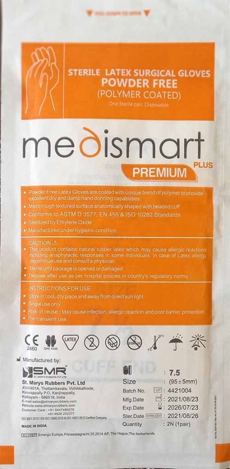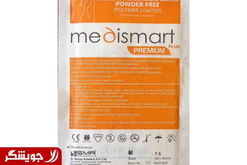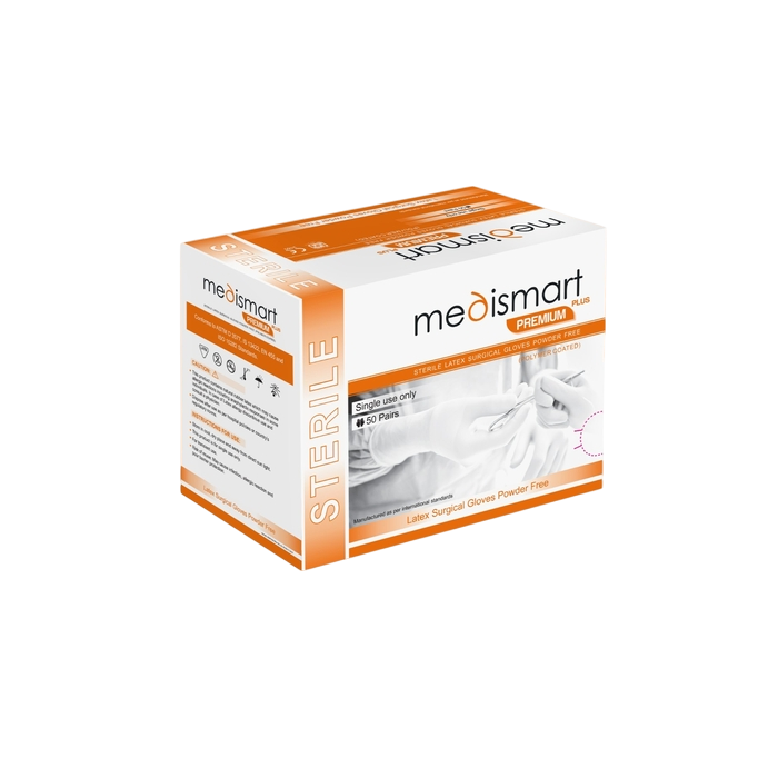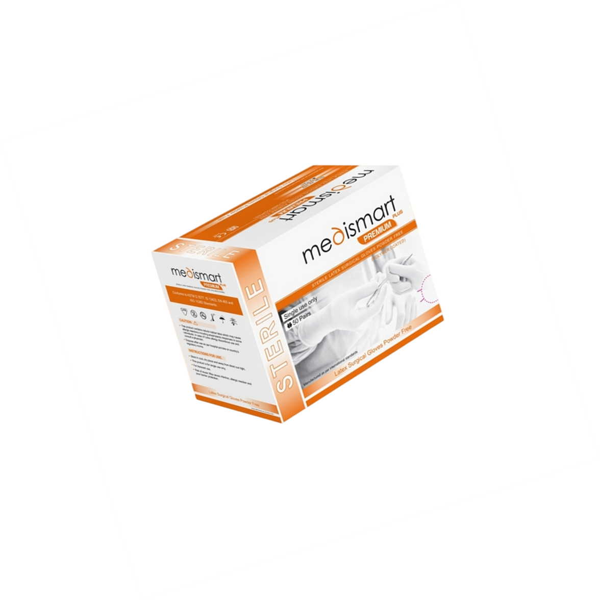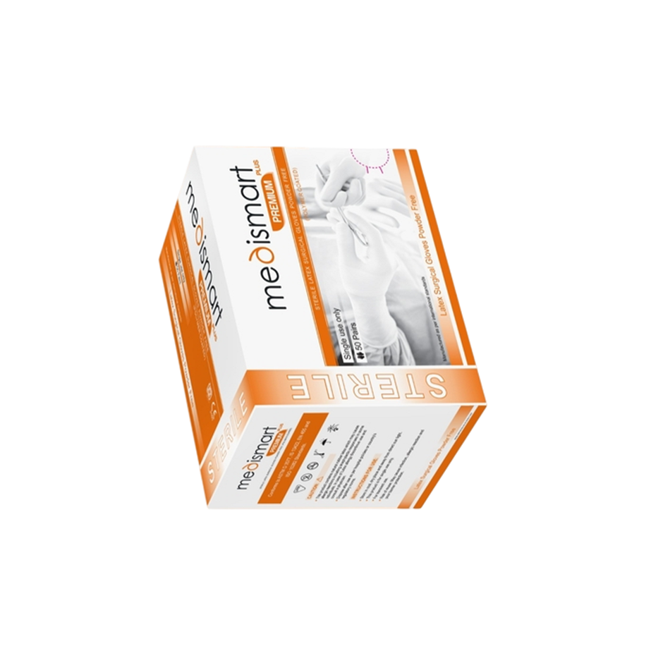 دستکش جراحی بدون پودر برند مدی اسمارت بسته بندی 50عددی