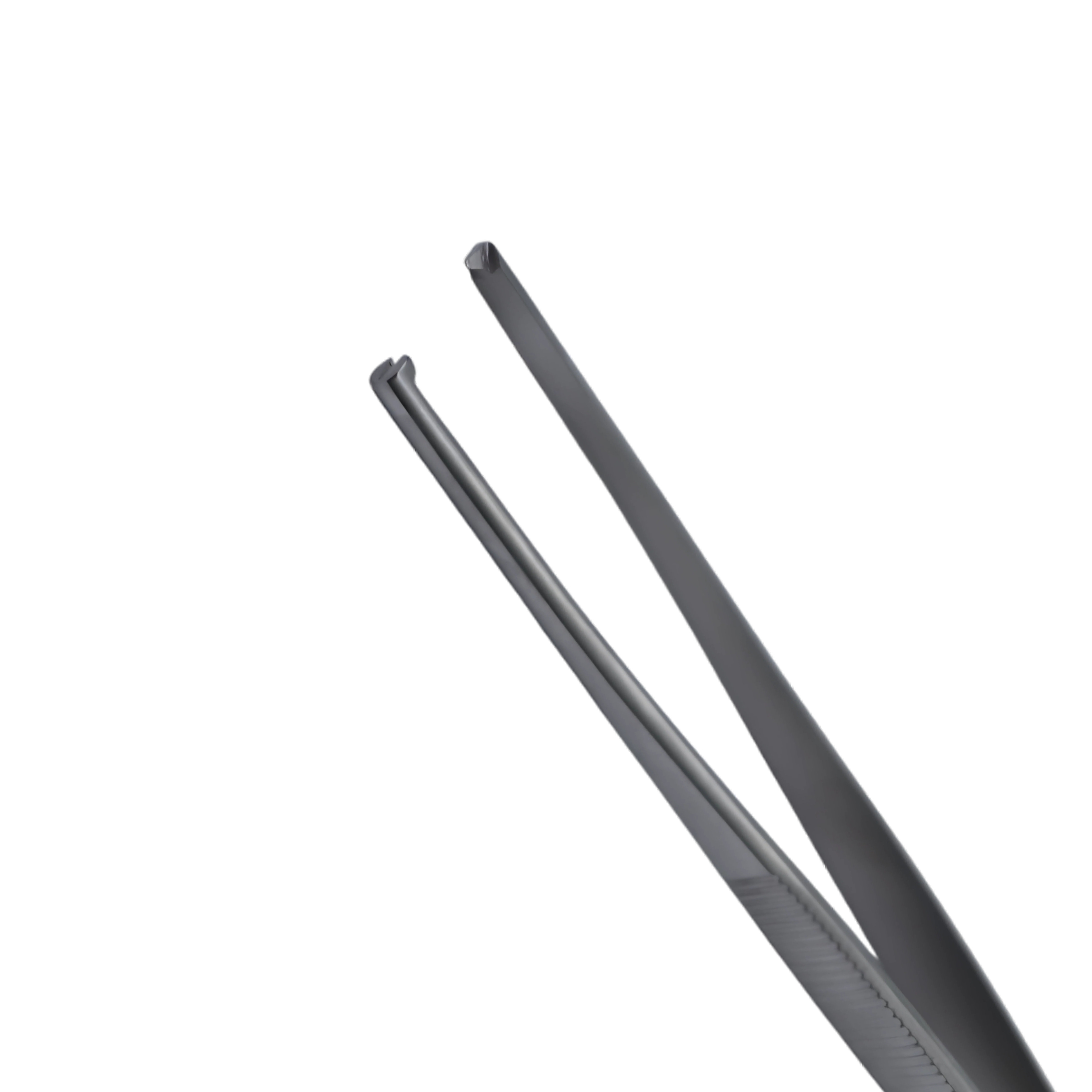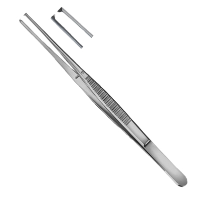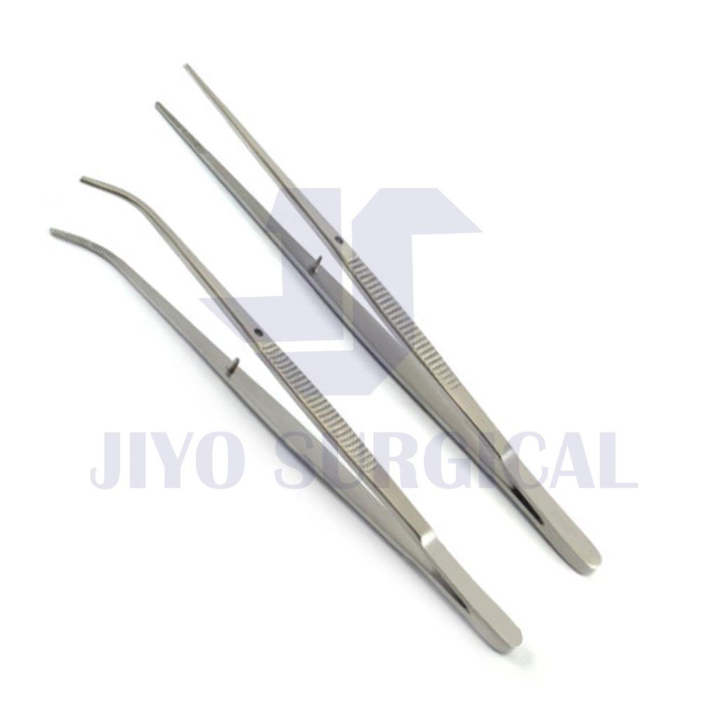 پنس مستقیم - Taylor Tweezer:برای گرفتن و جابه جایی مواد به داخل و خارج از دهان و برداشتن اجسام کوچک مثل رول های پنبه، فرز ها ، پین و … کاربرد دارد.این پنس قابل استریل است.پنس مستقیم برند NDدر سه طول 12.5، 15 و 18 سانتی متری و با جنس استیل ضد زنگ عرضه می گردد.