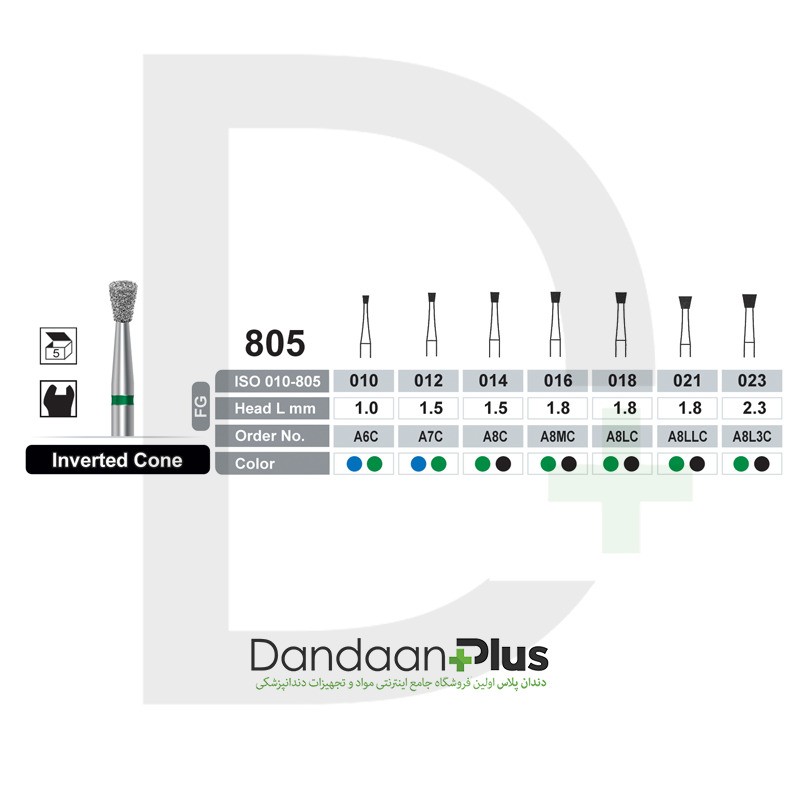 توضیحاتفرز الماسی توربین تراش INVERTED CONE 805 تیز کاوان TEES KAVANپروفیلاکسیآماده سازی کانالآماده سازی تاج دندانآماده سازی Inlay/onlayخالی کردن پر کردگی های قدیمیخرید فقط در بسته بندی های 4 عددی میباشد