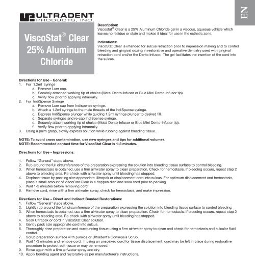 این ژل برای انعقاد خون در ناحیه قدامی مناسب است؛ چون شفاف است و اثری به جا نمیگذارد. فرمول سیلیس موجود در این ژل باعثکنترل سریع خونریزیهای جزئی بدون ایجاد لکه میشود. برخلاف ژلهای حاوی فریک سولفات، این ژلها در باندینگ دخیل نیستند.آلومینیوم کلراید ۲۵ درصدبرای تمامی خونریزیهای جزئی مناسب است اما به طور به خصوص برای خونریزیهای ناحیه قدامی طراحی شدهاست.بدون ایجاد لکهاستفاده آساندارای ویسکوزیته مناسببرای مشاهده قیمت وخرید مواد منعقد کننده خون (هموستات دندانپزشکی)به وبسایتفروش ابزار و مواد دندانپزشکی دنتیوامراجعه کنید و محصول خود را با بهترین کیفیت و تضمین اصالت کالا خریداری نمایید.