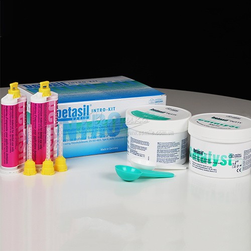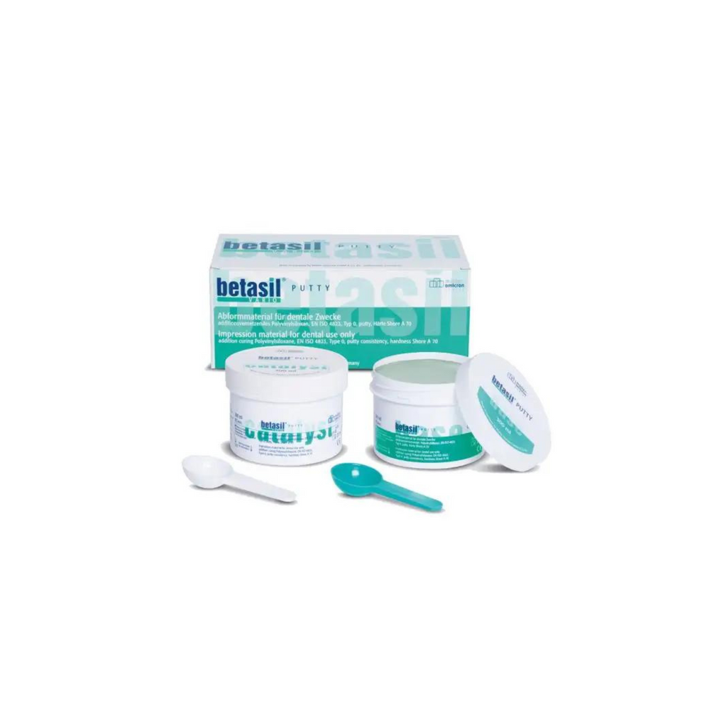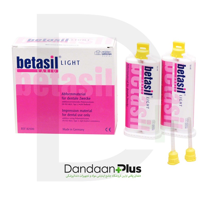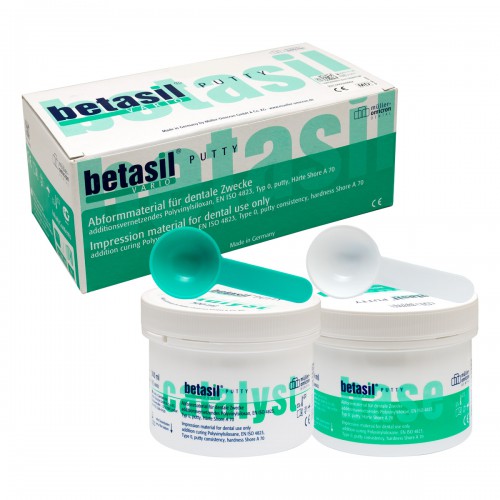 توضیحاتپوتی هارد betasil ماده ای است که از آن برای قالبگیری دو مرحله ای استفاده می کنند. این ماده دارای مواد سیلیکون افزایشی است. همچنین دقت ثبت بسیار بالایی دارد. این محصول در کشور آلمان تولید شده است. پوتی هارد برند betasil سبز رنگ است و طعم و بوی نعناع دارد. حجم آن نیز 2 * 300 میلی لیتر است. همچنین میزان درجه سختی این محصول shore A 70 است.