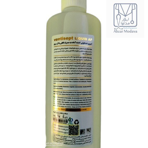 و کارایی از وزارت بهداشت، درمان و آموزش پزشکیمیباشد.محلول ضد عفونی کننده ابزار و سطوح ونتی سپت آ اف در دو حجم 0.5 و 5 لیتری عرضه میگردد.****بهترینمواد ضد عفونی کنندهدندانپزشکی را از فروشگاه اینترنتی دندانت تهیه کنید****روش مصرف:محلول را میتوان به