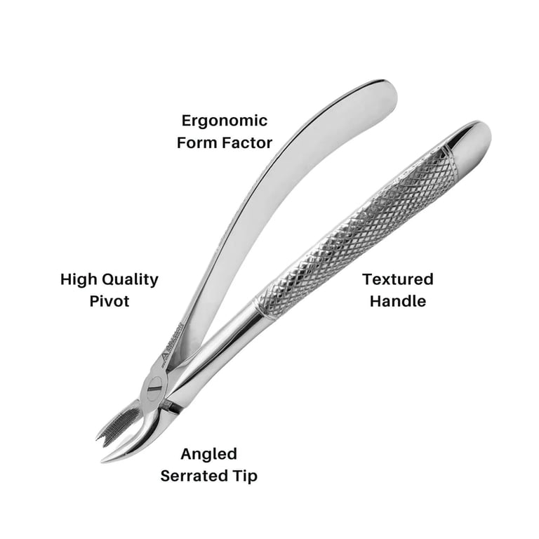 فورسپس کاهورن فک بالا راست - Upper Molars Right Forceps Fig89:این فورسپس جهت قلاب کردن بین دو ریشه دندان مورد استفاده قرار می گیرد.در ساخت قسمت فوقانی ظرافت خاصی دارد و لبه های بالا و پایین فورسپس دندانه دار است.مشابه نمونه های اروپایی طراحی و تولید شده است.طول فورسپس 17 سانتی متر و طول کاربردی آن 3 سانتی متر است.فورسپس کاهورن فک بالا راستبرند دنتال دیوایسبا جنس استیل عرضه می گردد.**** خریدفورسپسبا بهترین قیمت کلیک کنید ******** خرید بهترینابزار دندانپزشکیبا کیفیتی تضمینی تنها در دندانت ****