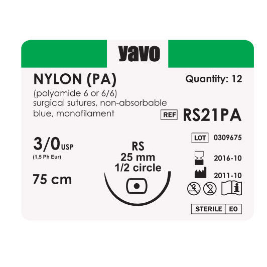 توضیحاتنخ غیر قابل جذب نایلون SUPA (Monifilament Polyamide SUPA)بخیه زدن یکی از مهم ترین عوامل در بهبودی سالم برای بیماران جراحی است. بخیه زدن مناسب برای بهبود، پیشگیری از عفونت و به حداقل رساندن جای زخم بسیار مهم است. نخ پلی آمید یا نخ غیر قابل جذب نایلون، رایج ترین نخ بخیه غیر قابل جذب است. به دلیل واکنش پذیری کم بافتی، اغلب به عنوان بخیه برای پوست استفاده می شود.برای استفاده در جراحی های قلبی عروقی، چشمی و عصبی، دوختن پوست، غلاف ماهیچه عالی هستند. استحکام کششی بالایی دارند. هنگامی که به عنوان چند رشته استفاده می شود، پس از شش ماه ماندن در بافت، هیچ استحکام کششی را حفظ نمی کند. فرم های تک رشته ای دو سوم استحکام اولیه خود را برای حدود 11 سال حفظ می کنند.نایلون سفت است و جابجایی و بستن را دشوار می کند. با این حال، فرم های چند رشته ای دارای خواص جابجایی بهتری هستند. این نخ ها نرم نیستند ولی سطحی بسیار صاف دارند و به همین دلیل در هنگام استفاده از این نخ ها باید فقط از گره ضربدری دوبل استفاده کرد تا از باز شدن گره جلوگیری شود. استفاده می شود. این نخ معمولا بعد از 10 سال مولکول هایش از هم پاشیده و باز می شود و از بین می رود.نخ غیر قابل جذب نایلون SUPA، به صورت تک رشته ای بوده و در عین حال نرم می باشند تا به راحتی بتوان آن ها را گره زد. این نخ برای جراحی های عمومی، مصارف دندان پزشکی، جراحی پوست، مدل های آناتومیکی سیلیکونی، جراحی دامپزشکی و عبور از هرگونه مواد محکم، بسیار کاربردی و ایده آل می باشند. برعکس، برای استفاده در جراحی های قلبی و عروقی مناسب نبوده و در برابر عفونت مقاوم نیستند. در صورت منقضی شدن تاریخ مصرف نخ، حتما باید آن را معدوم کرد. این نخ غیر قابل جذب نایلون، نسبت به سایرین، کمترین خاصیت ترومبوژنیک را دارند (ایجاد لخته خون).