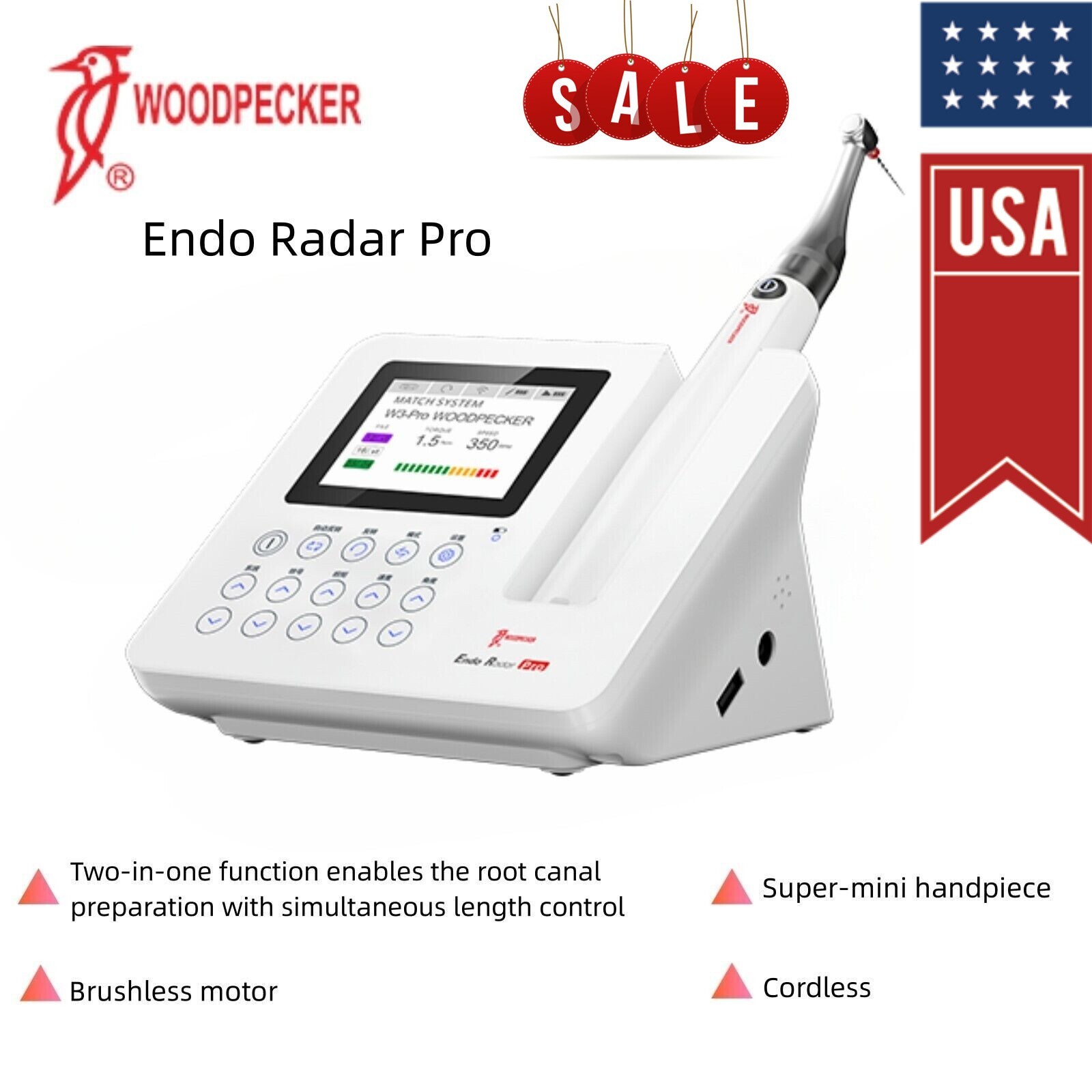 توضیحاتدستگاه اندو روتاری چیست و چه کاربردی دارد؟اگر پوسیدگیها که در دندان ایجاد میشوند، در زمان مناسب درمان نشوند، قطعا میتوانند به کانال دندان انتقال پیدا کنند و منجر به ملتهب شدن پالپ دندان شوند.قطعا در این شرایط لازم است تا ریشه دندان درمان شود. اندودانتیکس که نام دیگر درمان ریشه میباشد، نه تنها درد و التهاب دندان را از بین میبرد بلکه به طول عمر بیشتر دندانها کمک میکند.دستگاه اندو روتاری یکی از پرکاربردترین ابزارهایی است که در درمان ریشه استفاده میشود.این دستگاهها نه تنها از انعطاف بالایی برخوردار میباشند، بلکه سرعت فرایند درمان را افزایش میدهند.با استفاده از دستگاه اندو روتاری میتوانید فابلها را با سرعت و تمرکز بیشتری در عصب کشی دندانها استفاده کنید.در واقع فایلها در نوعهای مختلفی وجود دارند که با توجه به شکل کانال دندان استفاده میشوند و زمانی که این فایلها درون کانال ریشه دندان حرکت داده میشوند، باکتریها از بین میروند و التهاب دندان فروکش میکند.قطعا استفاده از دستگاه اندو روتاری در مقایسه با حرکت دست دندانپزشک موثرتر خواهد بود، چرا که:1. سرعت درمان ریشه و پاکسازی کانال افزایش پیدا میکند و بیمار احساس راحتی بیشتری خواهد کرد.2. مقدار درد پس از پایان درمان، به طرز قابل توجهی کاهش پیدا میکند چرا که فشار کمتری بر روی دندان وجود داشته است.3. دقت و کیفیت نتیجه کار عصب کشی افزایش پیدا میکند.بهترین ویژگیهای دستگاه اندو روتاری1. تولید حرکات ریز و حساس که باعث خالی شدن کانال دندان و درمان ریشه دندان میگردند.2. کاهش درد پس از درمان به میزان قابل توجهی.3. استفاده آسان از دستگاهاندو موتور و اپکس لوکیتور وودپکراندو موتور و اپکس لوکیتور وودپکر ENDO PADAR PLUS Woodpecker یکی از کاربردیترین تجهیزات دندانپزشکی میباشد که میتواند ریشههای دندان را درمان کند.این روش بسیار آسان است و دقت بسیار بالایی دارد. همچنین به شما کمک میکند تا کانالهای ریشه را هر چه سریعتر و راحتتر تخلیه کنید.این وسیله در درمان ریشه و عصبکشی دندان پزشکی نیز موثر واقع میشود. این دستگاه ساخت کشور چین است.صفحه نمایش این دستگاه OLED است. سری آنگل آن قابلیت چرخش در 360 درجه را دارد که به این صورت میتواند کلیه دندانها را پوشش دهد.از کاربردهای اپکس روتاری میتوان به موتور براش ل