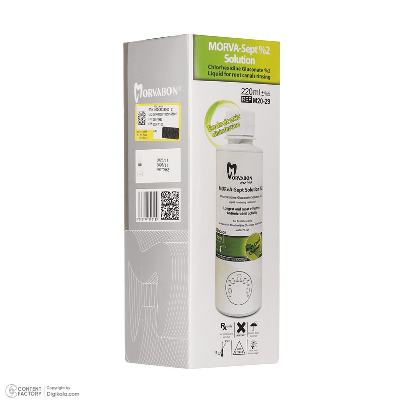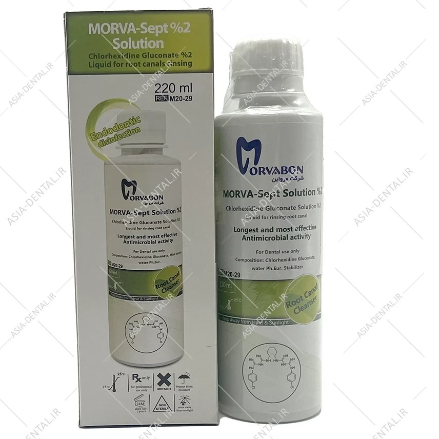 توضیحاتویژگیهای محلول کلرهگزیدین مرواسپت 2٪ – Morva Sept Solution :محلول مروا-سپت 2%کلر هگزیدین گلوکونات 2%جهت شستشو و ضد عفونی کردن کانال ریشه در درمان اندو220 میلی لیتر و یک لیترآماده سازی کانال ریشهشست و شوی روت کانال جهت از بین بردن باقیمانده هااستفاده در موارد عفونتآنتروکوک فوکالیسو یاکاندیدا آلبیکانسالتهاب های غیر قابل التیام در اطراف راس ریشهآسان کردن استفاده از ابزار های دندانپزشکی بوسیله روان سازی روت کانالفعالیت ضد باکتری موثر و طولانی مدتافزایش قدرت اتصال دنتین به عوامل باندینگنداشتن اثر سمی روی بافت پری آپیکالتداوم اثربخشی ضدمیکروبی در کانال حداقل تا 72 ساعت و حداکثر تا 2 هفتهکلرهگزیدین توسط بارهای مثبت خود جذب دنتین شده و نقش موثری در حذف کولونی ها و بایوفیلم ها دارد و این اثربخشی تا چندین روز طی دوره درمان باعث باکتری کشی دنتین می شود.بسته بندی های موجود: بطری 220 میلی لیتری و یک لیتر