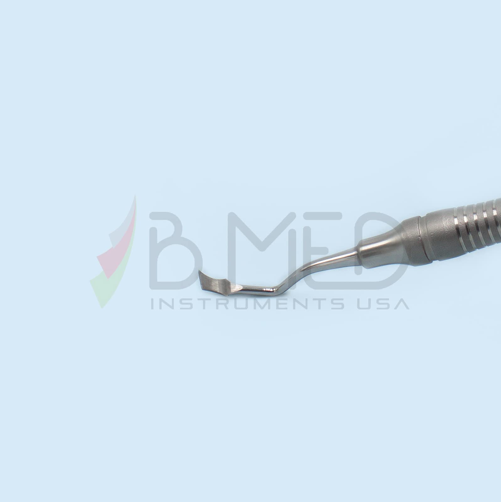 چیزل بک اکشن - Back Action Chisel:جهت تراش و برداشت استخوان به منظور دبریدمان و شکل دهی به بافت استخوانی همچنین جمع آوری Bone Graft مورد استفاده است.بسیار سبک و خوش دست است و در مدت طولانی به راحتی قابل استفاده است.برای تطابق بهتر با سطح استخوان لبه آن زاویه دار است.چیزل بک اکشن برند دنتال دیوایسدر جنس استیل ضد زنگ عرضه می گردد.