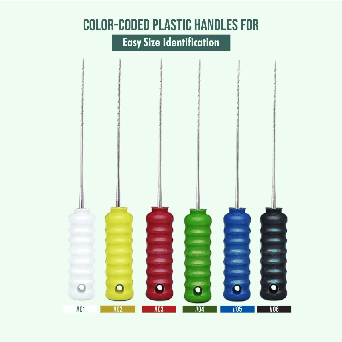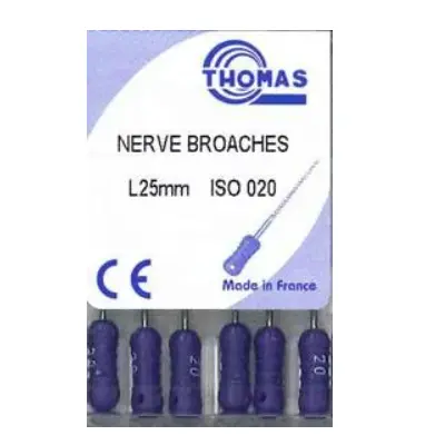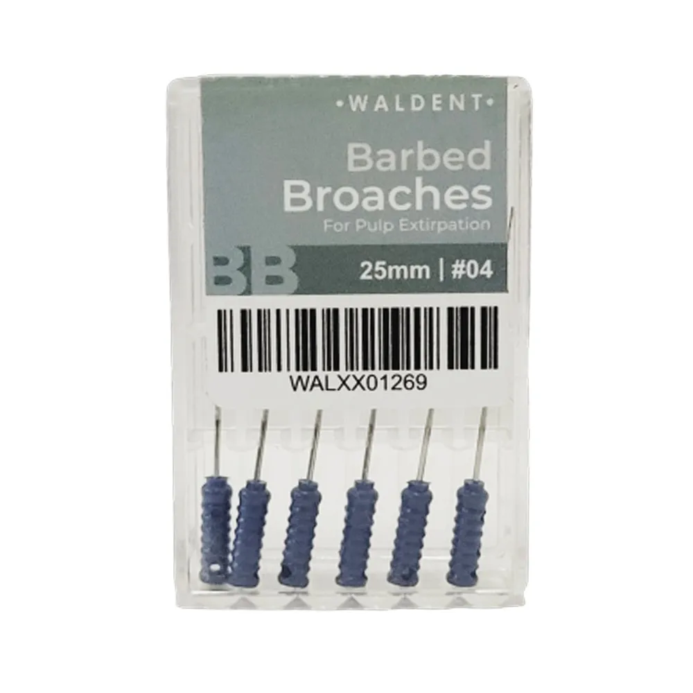 باربروچ طول 25 - Barbed Broaches:از این ابزار برای پاکسازی کانال دندان از پالپ عفونی شده و دبریها استفاده میشود. حتی در پاکسازی قطعات فایل شکسته و یا مواد پرکننده نیز میتواند کمک کنننده باشد.باربروچ طول 25 از برند NID در اندازههای 0 (10) - 1 (15) - 2 (20) - 3 (25) - 4 (30) - 5 (35) - 6 (40) - 2-4 (20-30) با جنس نیکل تیتانیوم ضد زنگ عرضه میشود.