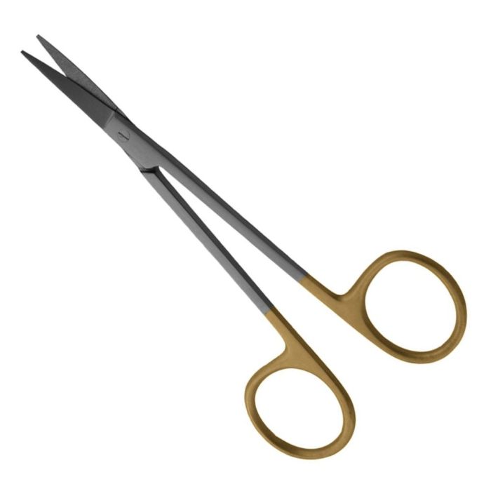 توضیحاتجنس آلیاژ: استیل ضدزنگبرند : دنتال دیووایس(DENTAL DEVICES)نام محصول: قیچی جراحی دسته طلایی سرصاف و سرکجGoldman-Fox Serrated Scissorsتوضیحات: دسته طلایی تنگستن- مخصوص برش لثه، نخ بخیه و باند در جراحی – مقاوم در برابر آسیب و زنگ زدگی – بدون تغییر رنگ و شکل در برابر مواد ضد عفونی کننده – مدل: سر صاف و سرکجکارایی: قیچی جراحی ابزاری تخصصی است که در طی یک عمل جراحی برای برش و تشریح بافت های سطح یا داخل بدن استفاده می شود. قیچی در اشکال و درجه تیزی مختلفی وجود دارد که تیغه های قیچی ها می توانند خمیده یا مستقیم باشند. – معمولاً از لبه های تیز شده برای برش و تشریح ماهیچه ها و بافت های سخت استفاده می شود.