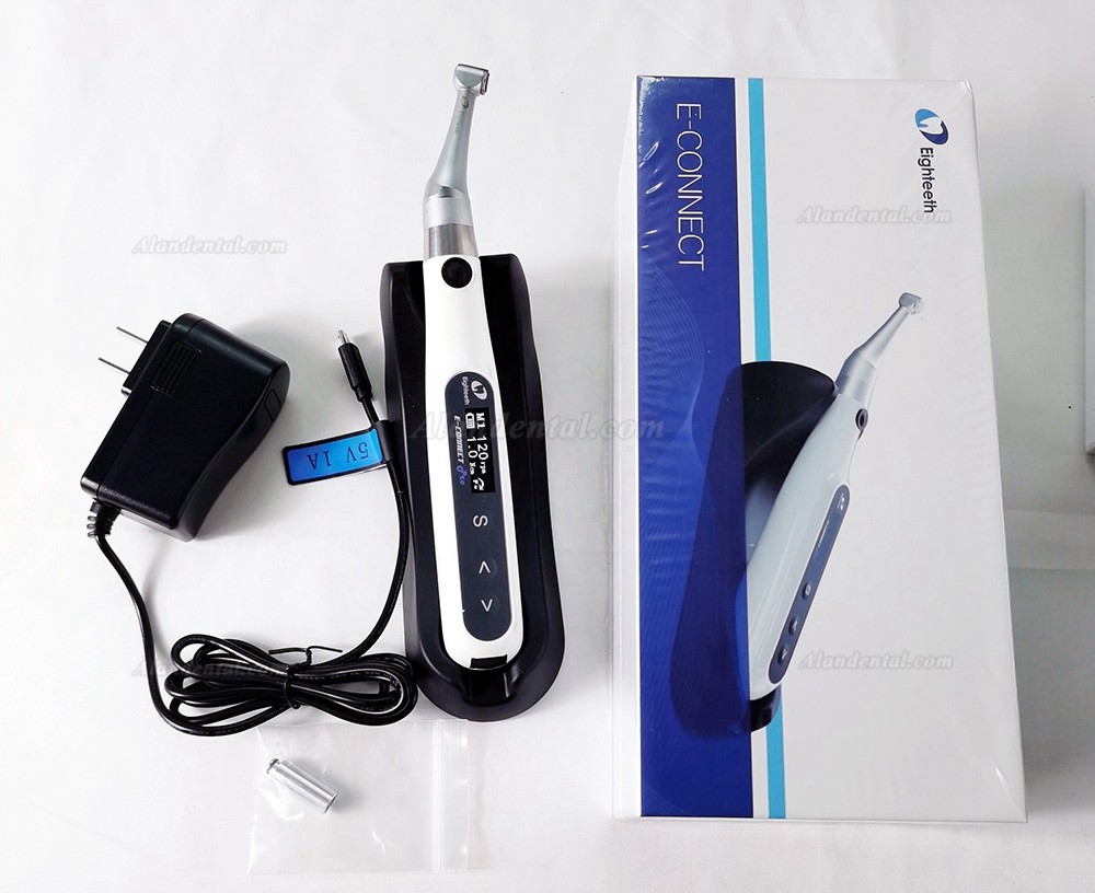 توضیحاتاندو موتور ایتیس مدل E Connect PRO برند ایتیسEighteethبی سیمولتاژ ورودی: ۱۰۰V-240V 50Hz/60Hz 0.4A Maxدارای صفحه نمایش دیجیتال OLEDقابل اتصال به اپکس فایندردارای ۶ حافظه پیش فرض برای سهولت کار با تمامی فایل های روتاریماکزیمم سرعت ۱۰۰۰ دور در دقیقهگشتاور قابل تنظیم بین ۰٫۵ تا ۴ نیوتن در سانتی متر مربعموتور قدرتمند و کم صداکالیبراسیون خودکار و هشدار صوتیتنظیم خودکار سرعت و گشتاور هنگام رسیدن به Apicalعملکرد توقف و برگشت خودکار (Auto Reverse & Auto stop back ) هنگام رسیدن به Apicalدارای سه حالت کاری مستقیم، معکوس و متقابلآنگل پوش باتن قابل اتوکلاو با قابلیت چرخش ۳۶۰ درجهقابلیت راست دست و چپ دست شدندارای دقت بسیار عالی در هر نوع کانالکاربری آسانطراحی ارگونومیکباتری لیتیومی ۱۶۰۰mahزمانی که اندو روتاری EIGHTEETH مدل E-CONNECT PRO به تنهایی استفاده می شود:Continuous mode: سرعت چرخش، تورک و جهت چرخش در ۶ حالت قابل تنظیم است.در صورت درگیری فایل با کانال بحالت اتومات تورک را کاهش میدهد که منجر به کاهش خطر شکستن فایل در دندان می شود.Reciprocating mode: قابلیت تنظیم زوایای رفت و برگشت جهت فایلهای رسیپروکال متنوع جهت افزایش ایمنی و بازدهی بیشتر.عملکرد های پیشرفته تر: تبدیل برای راست دست و چپ دست، اتوکالیبراسیون ، تنظیم صدابیپ و …سر کوچکی که در ۳۶۰ درجه تنظیم می شودتا دید عالی در اختیار قرار دهدموتور ورودی اوریجینال که صدای کم و عمر طولانی داردپارامترشماره مدل: E-CONNECT Proولتاژ آداپتور: درج شده در تصویرمحدوده تورک: ۰٫۵ تا ۴ N.cmظرفیت باتری: ۱۶۰۰ میلی آمپر (به ۲۰۰۰ میلی آمپر می تواند ارتقا داده شود)سرعت 650 دور در دقیقهکنترل اتوماتیک سرعت و گشتاورچرخش دو طرفهصفحه نمایش LCDتعداد 6 برنامه پیش فرضقابلیت برگشت خودکار با 5 حالت مختلفهشدار صوتیقابلیت کار در محیط های خشک،مرطوب،خونی و عفونیکالیبراسیون خودکارآنگل پوش باتن قابل اتوکلاو