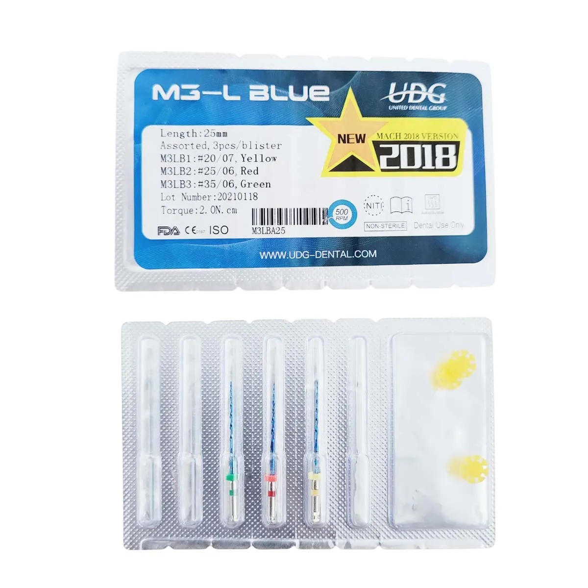 فایل روتاری6٪سه عددی -L Blue:دارایطراحی ویژه مولتی تیپر میباشد.در برابر شکست بسیار مقاوم است.قدرت برش بالایی دارد.فایل روتاری L Blueبه طول 25 میلیمتر و سایز 15 با