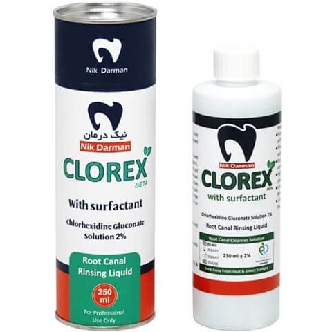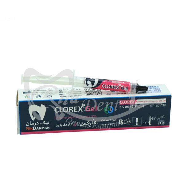 توضیحاتژل کلرهگزیدین گلوکونات 2 % CLOREX Gel نیک درمانکلرکس ژل حاوی کلرهگزیدین گلوکونات 2% در یک بستر ویسکوز و محلول در آب است که برای ضدعفونی کردن کانال ریشه استفاده می شود.کلرهگزیدین گلوکونات یک معرف کارآمد در مقابله با دو گونه موجود باکتری ها می باشد و به دلیل خاصیت ضدباکتریایی، گزینه بسیار مناسبی جهت ضدعفونی کردن کانال ریشه می باشد.همچنین پیش از ترمیم، آماده سازی تاج و اینله و نیز برای ضدعفونی کردن دست دندانپزشک و دستیاران و سطوح و تجهیزات پیش از جراحی به کار می رود.موارد استفاده:آماده سازی و ضدعفونی کردن کانال ریشهدرمان مجدد کانال های عفونی(عامل باکتریال انتروکوک فوکالیس و قارچ کاندیدا آلبیکانس)ضدعفونی کردن سطح دندان قبل از ترمیم های مستقیم، چسباندن کراون و لوتینگویژگی های محصولژل کلرهگزیدین 2% در یک بستر ویسکوز و محلول در آبآماده سازی و ضدعفونی کردن کانال ریشهدرمان مجدد کانال های عفونی (عامل باکتریال انتروکوک فوکالیس و قارچ کاندیدا آلبیکانس)ضدعفونی کردن سطح دندان قبل از ترمیم های مستقیم، چسباندن کراون و لوتینگحجم: سرنگ 2.7 گرم