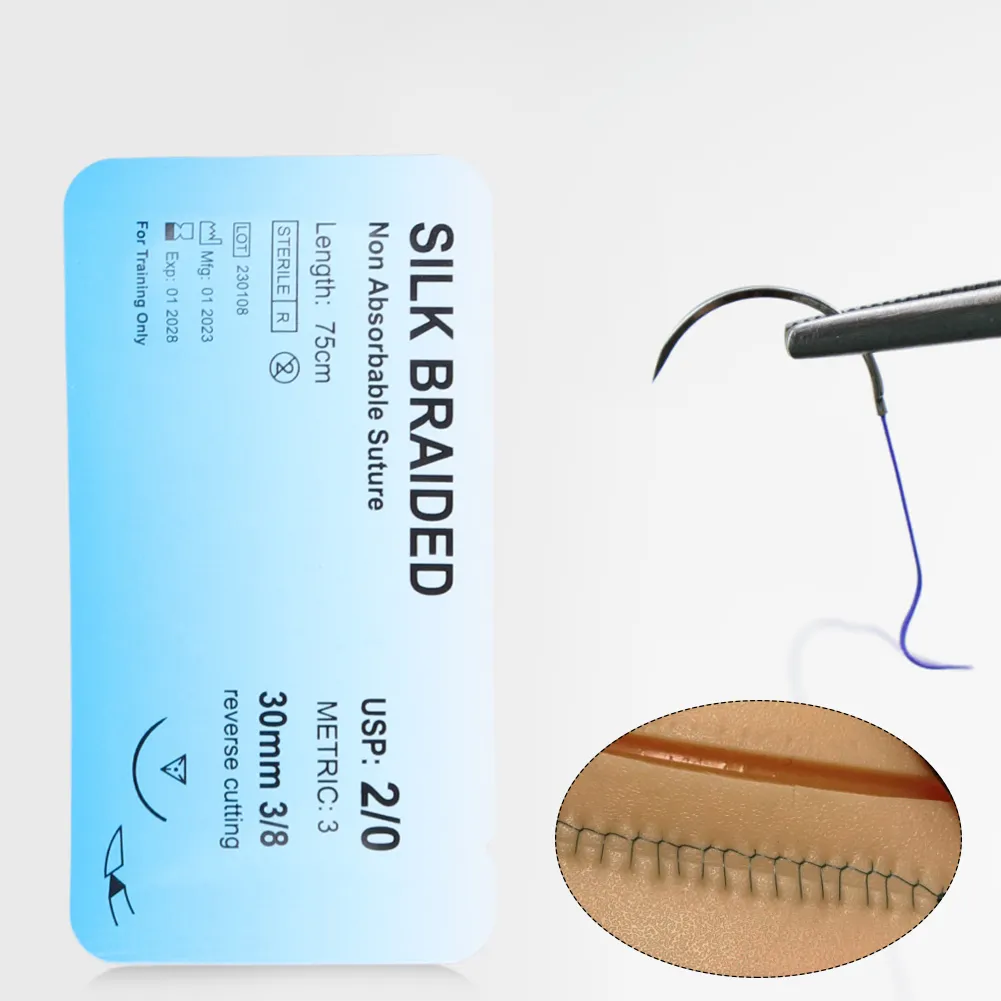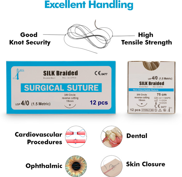 توضیحاتنخ بخیه سیلک سوچرز از باکیفیت ترین نخ های جراحی به شمار می آید که برای بخیهبافت های نرم،جراحی چشم و قلب و عروق و در دندانپزشکی کاربرد دارد.سوچرزاز بهترین تولید کنندگان نخ بخیه ایرانی است که نخ های سیلک را در دو رنگمشکیو بسته بندی 24 تایی تولید می کند.نخ سیلک سوچرز، استریل وغیر قابل جذببوده و در تهیه آن از فیبر طبیعی لارو کرم ابریشم استفاده شده است. از تابیده شدن چندین فیبر طبیعی، نخ بخیهچند رشته ایبه وجود می آید. از همین رو نخ بخیه سیلک سوچرز میزان حساسیت والتهاب متوسطیرا در محل بخیه ایجاد می کند.نخ بخیهسیلک سوچرز با گاز اتیلن اکسایداستریلشده و احتمال عفونت پوستی به ندرت رخ می دهد در نتیجه برای جراحی های چشم و دندانپزشکی بسیار ایده آل است. نخ بخیه ابریشمی سوچرز از نظر گره قدرتمند است.نخ های سیلک از فراورده های حیوانی تهیه می شود بنابراین در دسته نخ های طبیعی قرار می گیرد و از استحکام و دوام خوبی برخوردار است. این نخ بخیه در عین حال که مقاوم است انعطاف عالی دارد.طول نخ بخیه سیلک سوچرز75 سانتی مترو طول سوزن آن بسته به سایز سوزن متفاوت است. سوزن این محصول در قطرهای 2، 3، 4، 5 و 6 میلی متر ارائه می شود. سوزن نخ های بخیه سوچرز در دو نوع معمولی و اسپاچولا (دو سوزنه) ارائه می شود و با سطح مقطع 3.8 است. نخ بخیه سیلک سوچرز به رنگ مشکی و در بسته های24 عددیعرضه می شود.