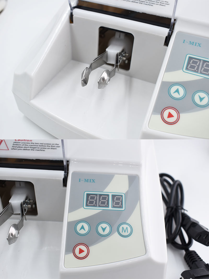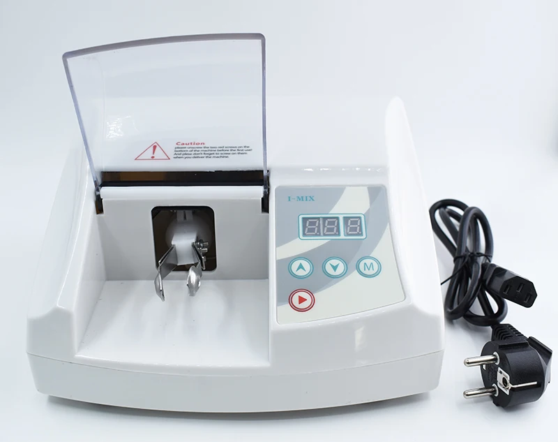 توضیحاتامالگاماتور کپسولی دیجیتال فوموس Fomos مدل I-Mixسرعت چرخش آن حداکثر 3000 دور در دقیقه است .زمان قابل تنظیم بین 1 تا 24 ثانیه می باشد.صفحه نمایش آن دیجیتال است.برای محافظت از دستگاه آمالگاماتور به سیستم های ایمنی میکروسوییچ ایمنی و قاب محافظ مجهز شده است.تغذیه و توان آن AC 220/240 V, 50/60 Hz / 400W طراحی شده است.دارای استانداردهای CE اروپا و ISO می باشد.وزن این دستگاه 3 کیلوگرم می باشد.ویژگی ها و مشخصاتدستگاه امالگاماتور کپسولی دیجیتال فوموس برای ترکیب مواد آمالگام همچون جیوه و نقره مورد استفاده قرار می گیرد. همچنین باعث بالارفتن سطح کیفی مواد مورد استفاده برای دندان های ترمیمی می شود. این مدل در دسته امالگاماتورهای کپسولی قرار دارد.برای امالگاماتور کپسولی فوموس Fomos مدل i mix دور موتور حدودا 4500 دور در دقیقه در نظر گرفته شده است. همچنین زمان بندی آن، بین 0 تا 99 ثانیه توسط کاربر قابل تنظیم است و می توان در دو مد کاری High و Low از آن استفاده نمود. این محصول جهت ایجاد ایمنی بیشتر علاوه بر میکروسوییچ، دارای قاب محافظ نیز می باشد.صفحه نمایش این آمالگاماتور از نوع دیجیتال بوده و سرعت مخلوط کردن مواد در آن بسیار بالا و مناسب می باشد. به طوری که هر مدل آمالگامی را در 24ثانیه میکس می نماید. بدنه این دستگاه از نوع پلاستیک با کیفیت می باشد.مشکلات احتمالیدستگاه آمالگاموتوردر حین کار در دستگاه آمالگاموتور لرزش ایجاد می گردد، بنابراین امکان فـشـرده شدن پودر آمالگام درمخزن دستگاه وجود دارد. که این امر سبب می شود که پـودر لازم از لـولـه تركيب آمالگاماتور نتواند عبورکند . مجموعه اتفاقات پیش آمد سبب می شود که تنظیم دستگاه آمالگاموتور مختل گردد. برای جلوگیریاز مختل شدن تنظیم دستگاه آمالگاموتور و حفاظت بیشتر از دستگاه بعد از هر بار استفاده از دستگاهآمالگاماتور لوله دستگاه را با استفاده از برس مـخـصـوص پاک کنید . همچنین نور آفتاب می تواند برایدستگاه مضر باشد بنابراین از تماس دستگاه با نور آفتاب خودداری شود. از کارهای دیگری که می توانبرای نگهداری بیشتر از دستگاه انجام داد این است که تقریبا در هفته دو بار دستگاه آمالگاماتور را سر وته كنید.