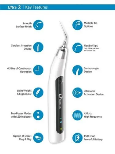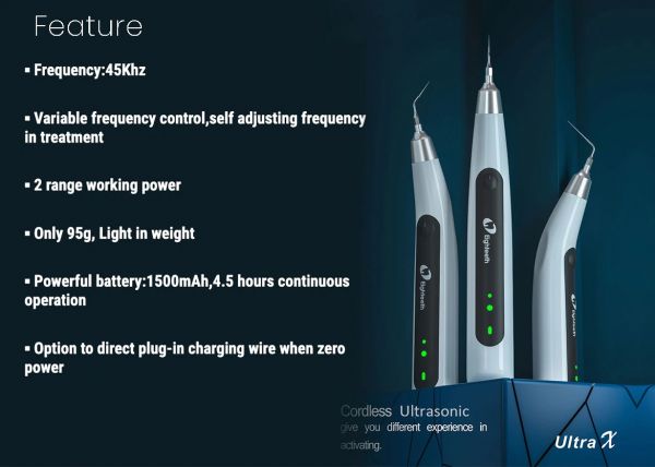 توضیحاتاین دستگاه شامل سه تیپ متفاوت می باشدتیپ طلایی قویترین تیپ می باشد و بعنوان مایکرواپنر و جهت ایجاد پلتفرم از آن استفاده میکنندتیپ نقره ای دارای قدرت متوسط می باشد و از آن برای خارج سازی قطعه شکسته لوز شده استفاده میکنندتیپ آبی، ضعیفترین تیپ می باشد و از آن برای فعال کردن محلولهای شوینده استفاده میکنندویژه گی ها :قابلیت کنترل فرکانستنظیم خودکار فرکانس در حین درمانمحدوده قدرت کاریبسیار سبک (فقط 95 گرم )امکان اتصال مستقیم به شارژر در زمان تخلیه کامل باتریباتری قدرتمند 1500 میلی آمپری4.5 ساعت استفاده مداوم را در اختیار شما قـرار می دهداثر کاویتاسیون (حباب زایی)