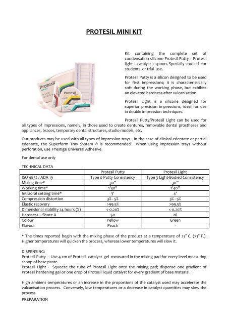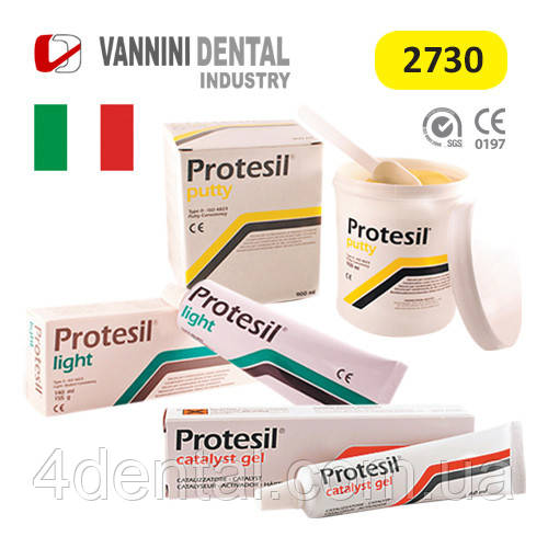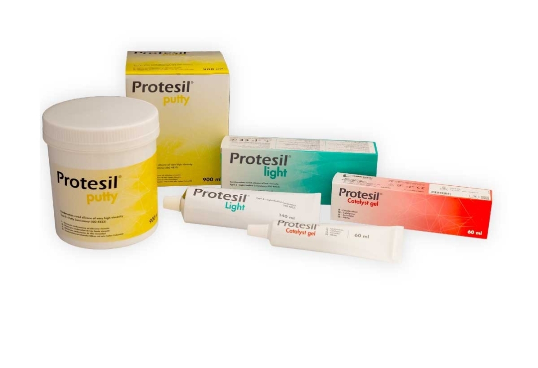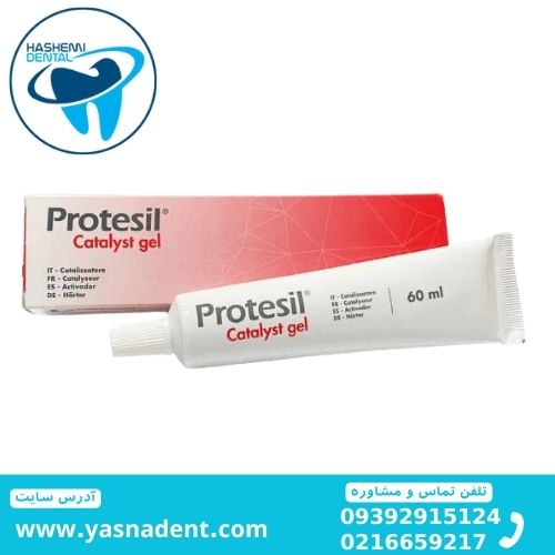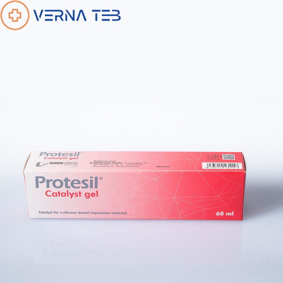ژل کاتالیست پروتسیل - Protesil Catalyst Gel:این ژل کاتالیستی است که قابلیت استفاده با سیلیکونهای متراکم (C-Silicon) همچون پوتی و لایت بادی متراکم از همین برند و سایر برندها را دارد و به آسانی با مواد قالبگیری نام برده مخلوط میشود.ژل کاتالیست پروتسیل (Protesil Catalyst Gel) از برند ایتالیایی ونینی (Vannini) با حجم 60ml در فروشگاه اینترنتی دندانت عرضه میشود.